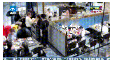 餐厅的监控视频显示,两人先是到取食材区用多个餐具去取牛蛙、毛肚、鸭肠等自己喜欢吃、价值又比较高的食材,将食材拿到餐桌上后,两人一边吃、一边找机会。