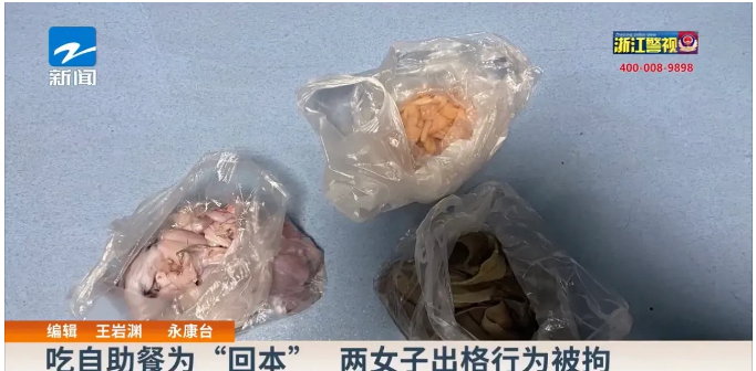 浙江永康,两女子想到某自助餐厅吃自助餐,但又觉得餐厅的定价太贵,于是突发奇想,带好打包袋前去用餐,并将价值400多元的牛蛙、毛肚、鸭肠等食材偷偷打包带回家。其他顾客将此事告诉老板后,老板报警求助。随后民警在两女子家中的冰箱处,帮老板找回被偷的食材。目前,两人已被拘留。
