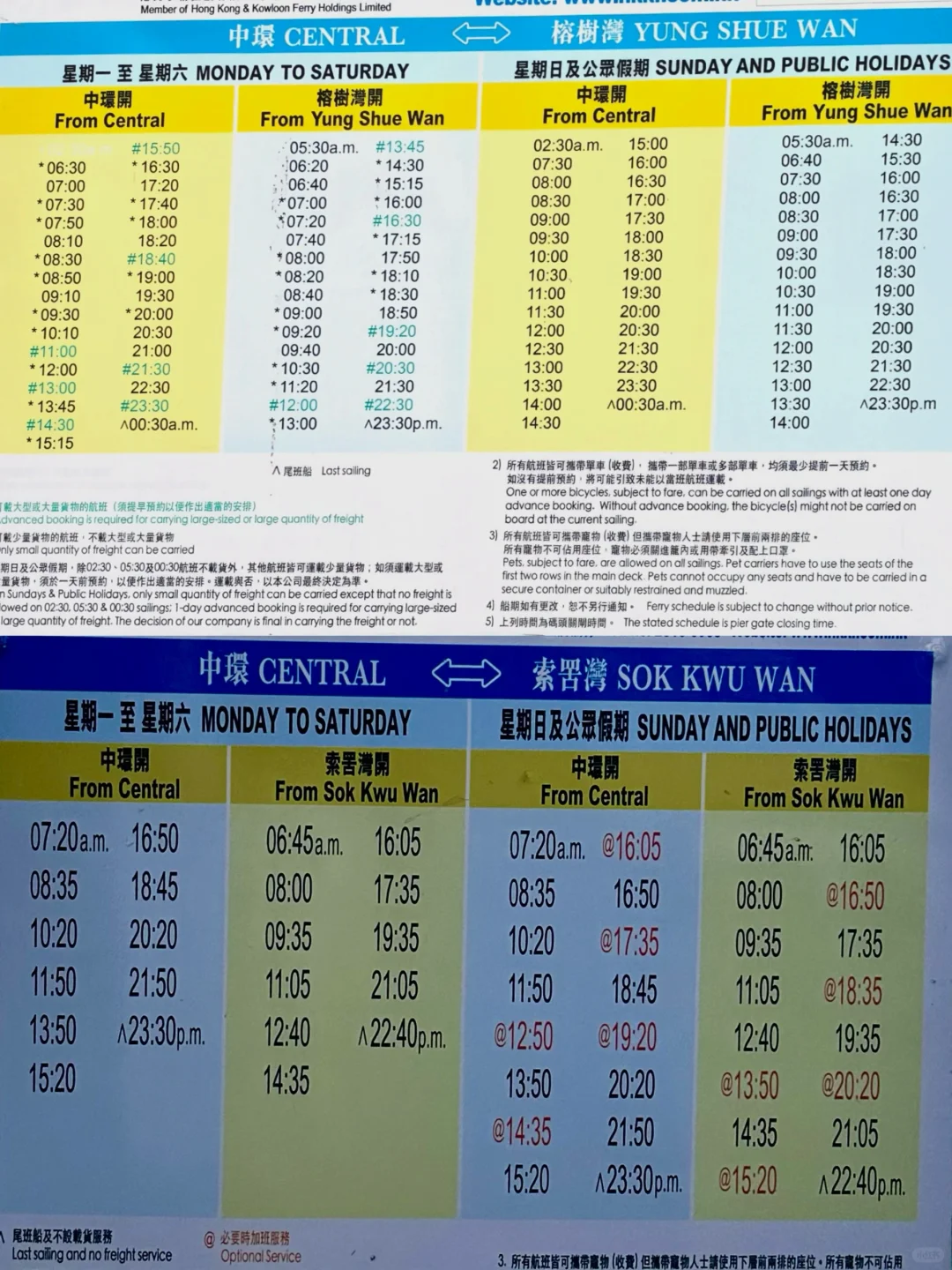 ❶在「中环码头4 号码头」坐轮渡前往南丫岛「榕树湾码头」或「索罟湾码头」,约 30 分钟⚠️注意轮渡开船时间请看图 18,避免错过尾班船