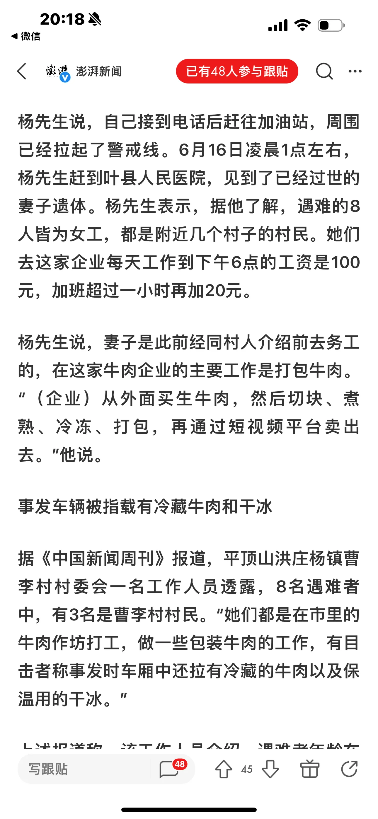 刚刚看了一位死者丈夫发言,说自己50多岁的妻子才去牛肉企业上10多天班,没想到,命丧冻柜。