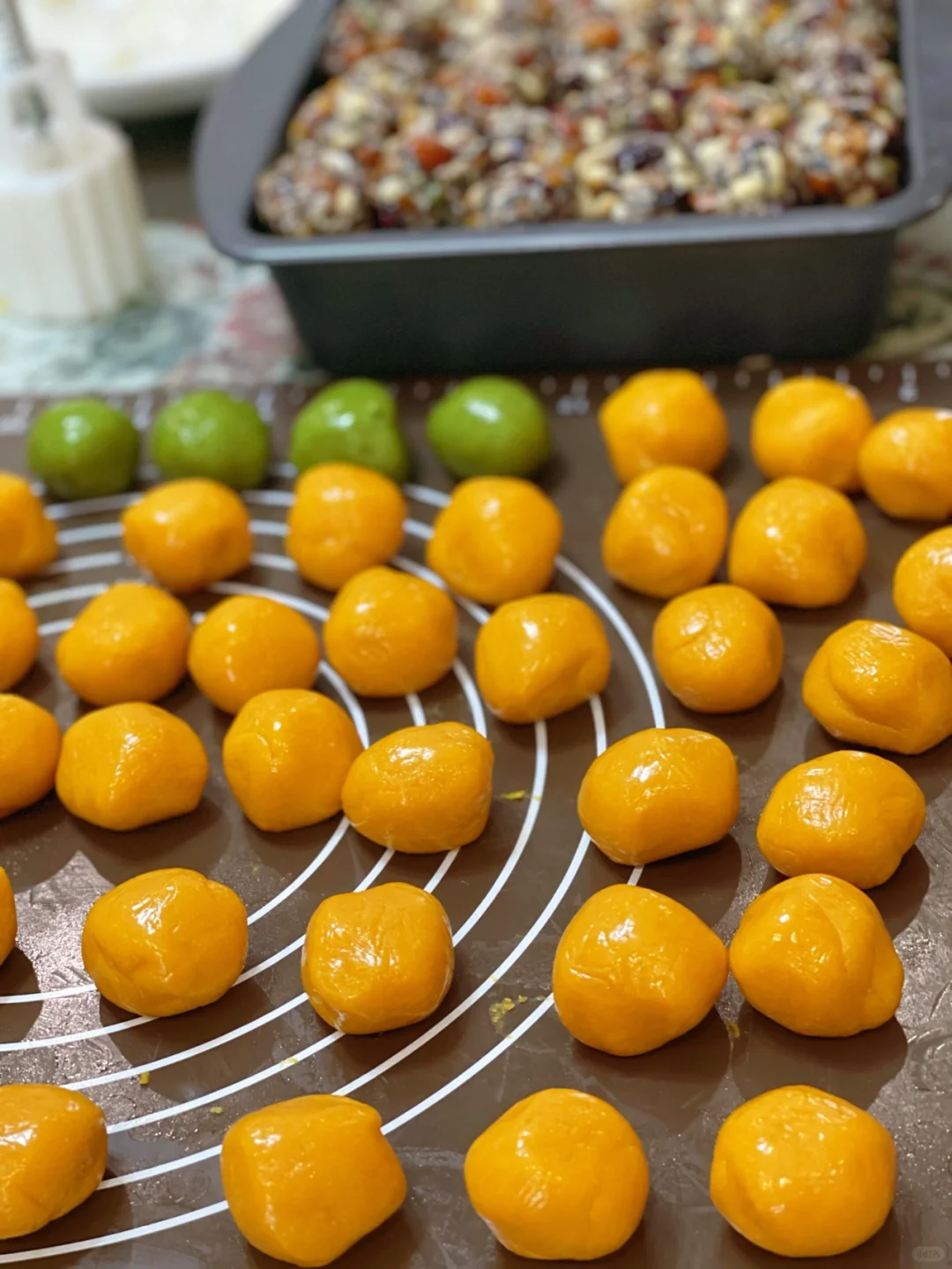 你们要记住馅儿静置以后还会变硬的,但也不能太软不然烤出来月饼会变形