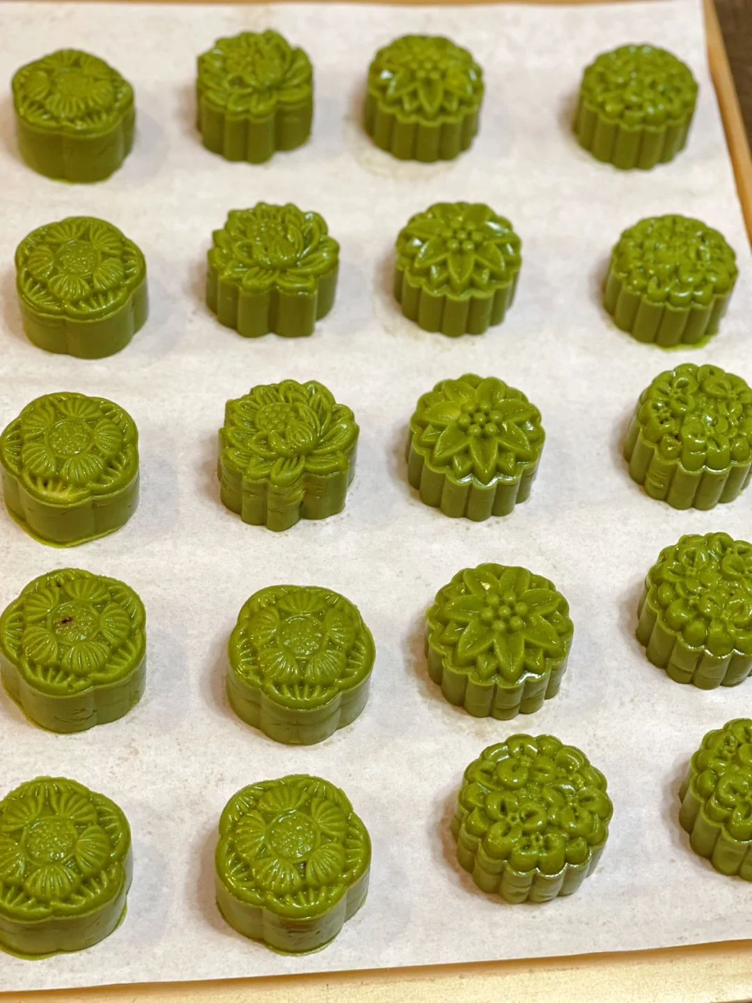 [如果饼皮想换颜色面粉换成相等的量就可以啦比如加了5g的抹茶粉面粉就要减掉5g左右]