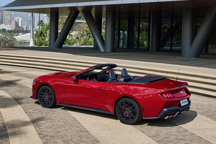 全新福特Mustang车型将在6月21日正式上市,除了我们熟悉的双门硬顶版外,该车还首次推出软顶敞篷版可选。作为迭代车型,新车内外设计相比2023款野马全面革新,但整车外观线条依旧是美式肌肉跑车经典设计,前后翼子板突出明显,搭配隆起的机舱盖、前六后四红色卡钳、四出排气口、独立大尾翼,看起来更有力量感。至于动力部分,中规版的福特Mustang依旧搭载2.3T L4涡轮增压发动机,最大功率220kW,最大扭矩453Nm,搭配10AT变速器和LSD限滑差速器,预计也是5s左右“破百”,作为跑车,其性能谈不上多强,主要玩的是个姿态。【来自懂车帝车友圈】