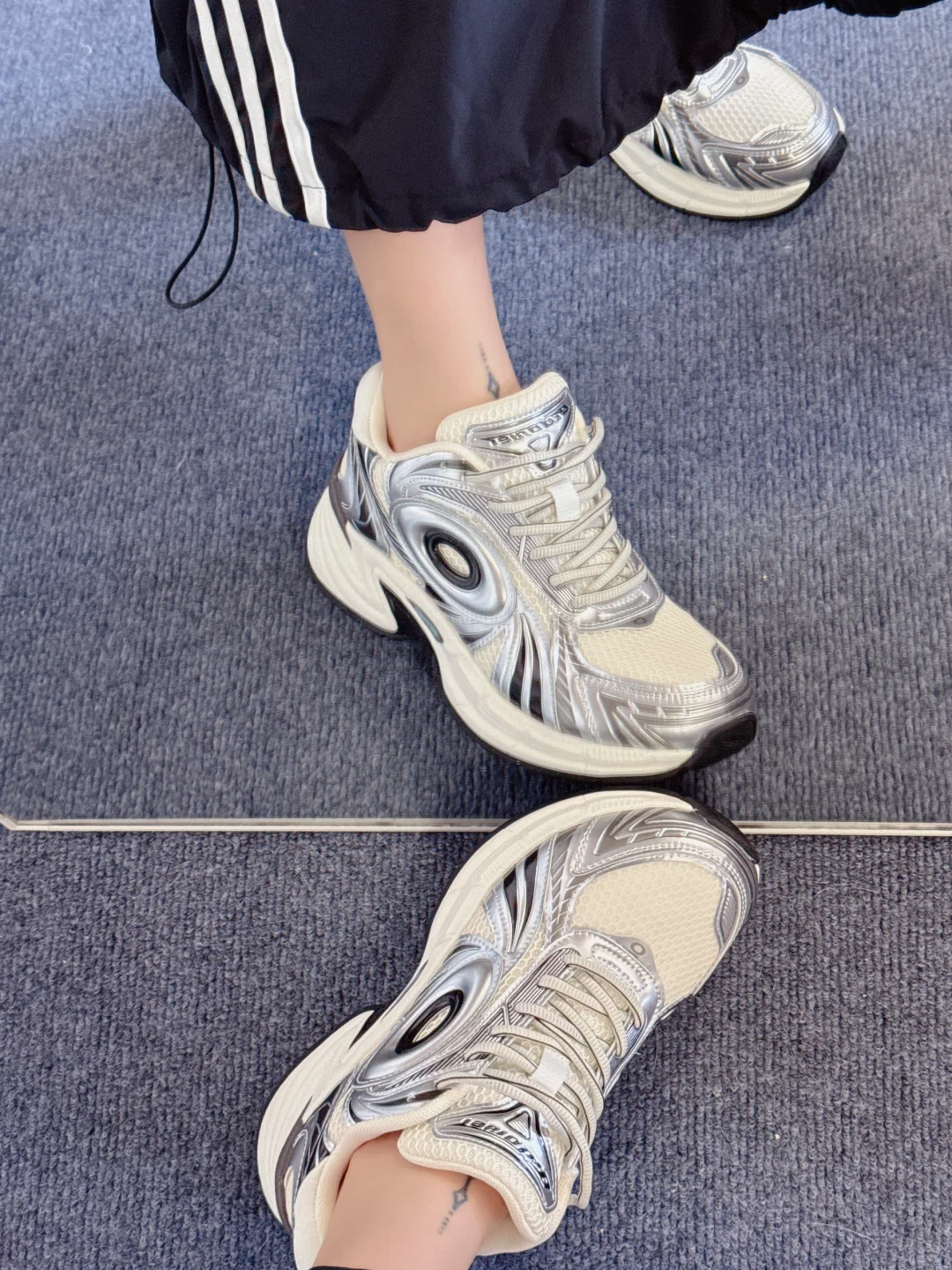 复古跑步鞋配长裙