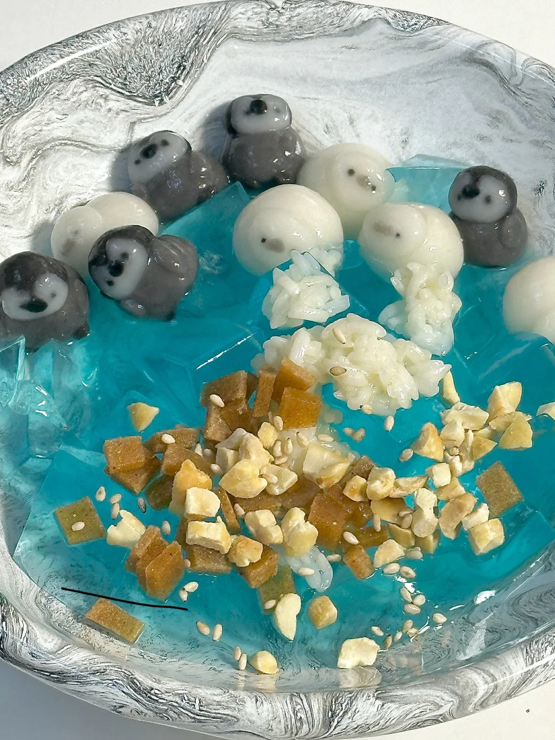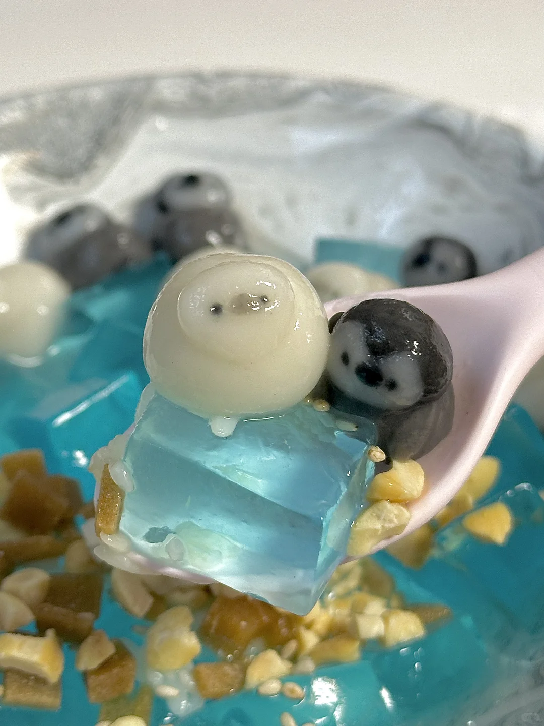 哇塞,这个配料搭配也太可爱了吧!小海豹和小企鹅冰粉,看起来就超好吃的