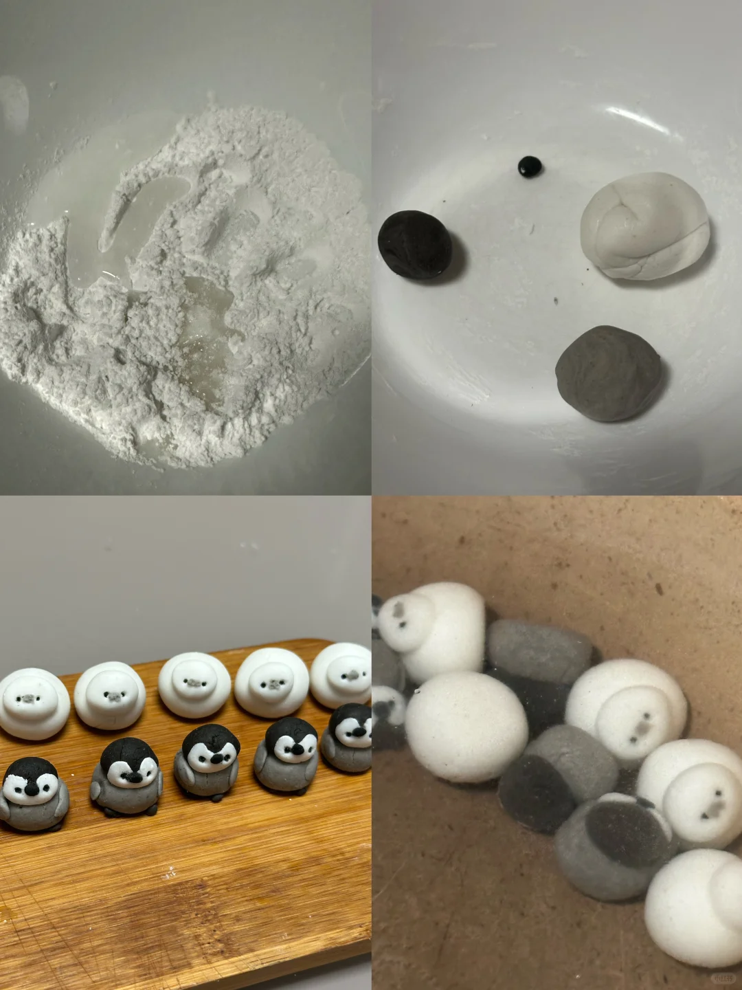 小企鹅和小海豹:35g糯米粉、25g开水、黑芝麻酱