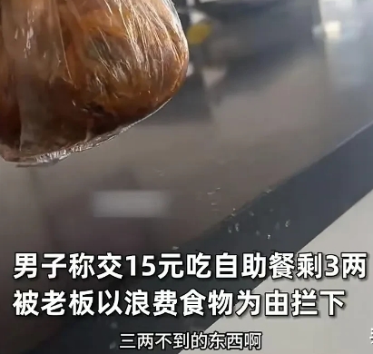 我觉得老板没错,也没要求罚款,本来就是小本经营,吃不了为啥要打那么多菜,三两剩菜,那可是一小碗了,浪费太多了,我们这边自助墙上可都贴着超过二两罚款5元的。