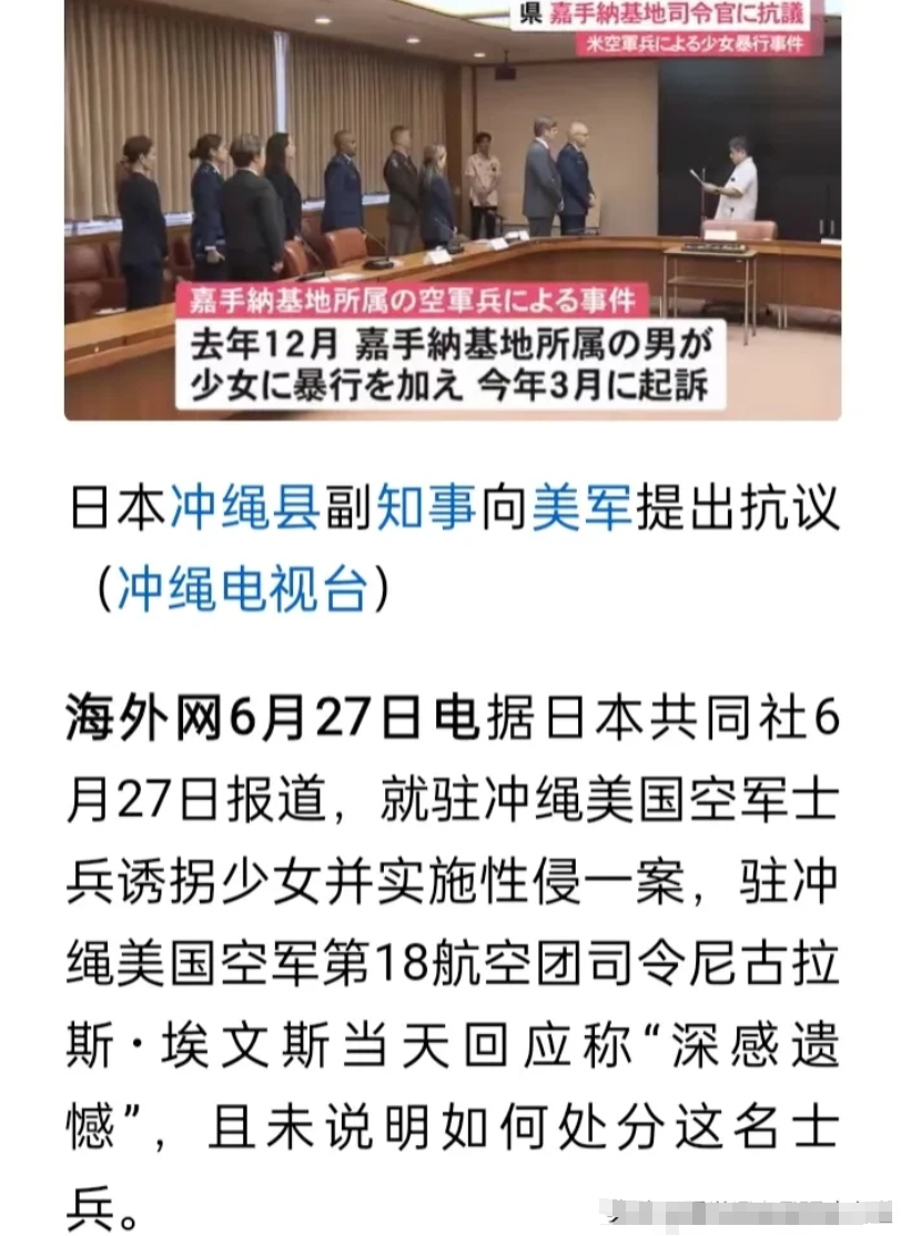 可是当日本官方对此提出抗议时,美军军方负责人仅仅是一句:“对此深表遗憾!”之后啥都没有了,也没有说怎么处分这名性侵女孩的士兵!