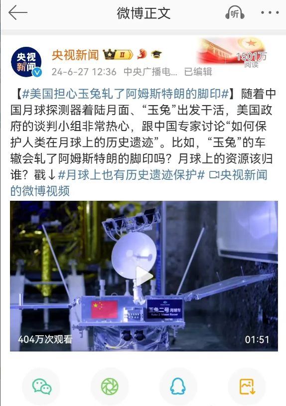 “早在2024年我们就警告过中国,不要破坏我们的登月遗迹!”