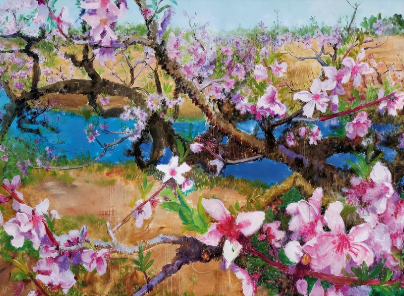 刚开始临摹的时候还很生疏,常常画错。但通过不懈的努力和反复练习,她逐渐掌握了大师的笔触、构图和色彩运用。没过多久她的“桃花”就画的栩栩如生。