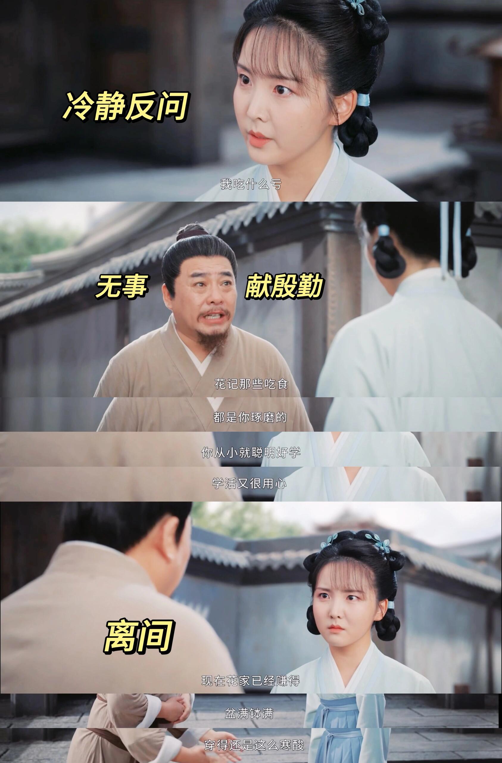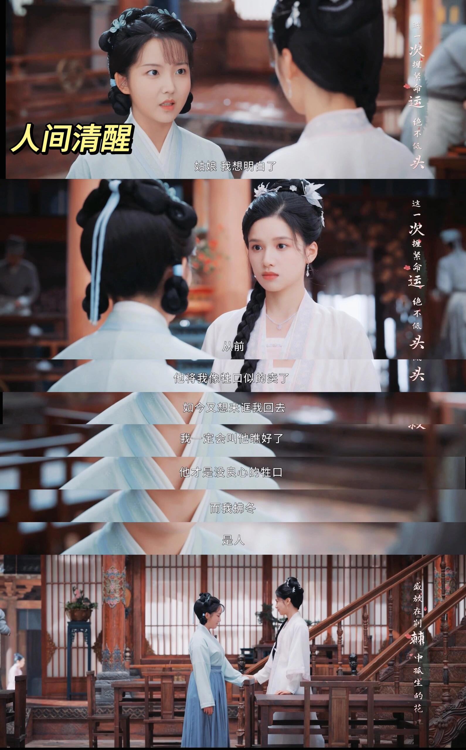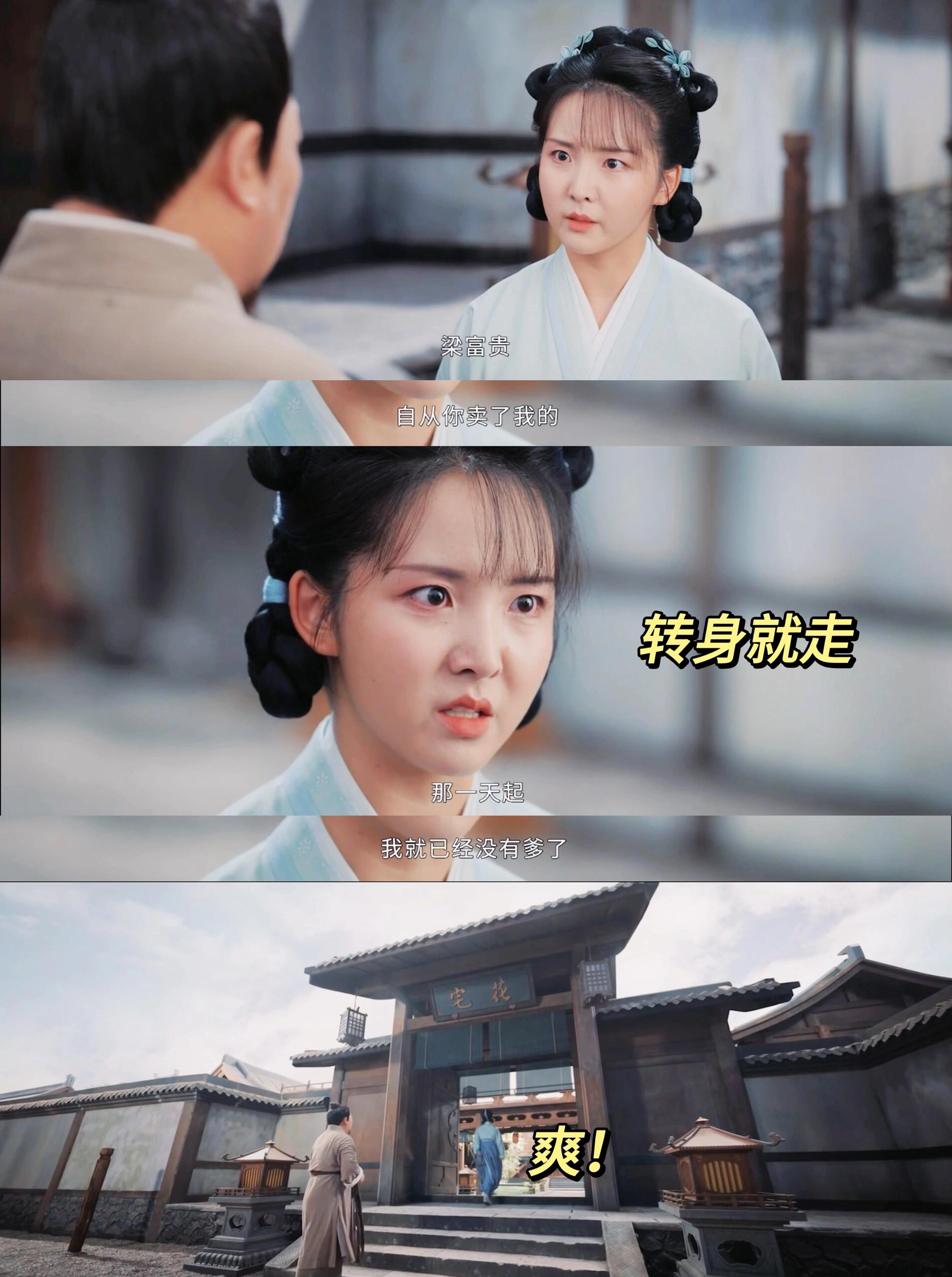 后面渣爹为了“荣华富贵”居然想偷菜谱,还找到拂冬卖惨、献殷勤、挑拨离间,无所不用其极,这里拂冬真的一整个支棱,既没有因为害怕而顺从,也没有因为激动一上来就大吵一架,而是沉着追问出梁富贵的目的,直接反击走人,就很爽。