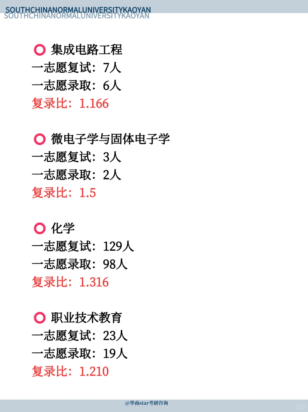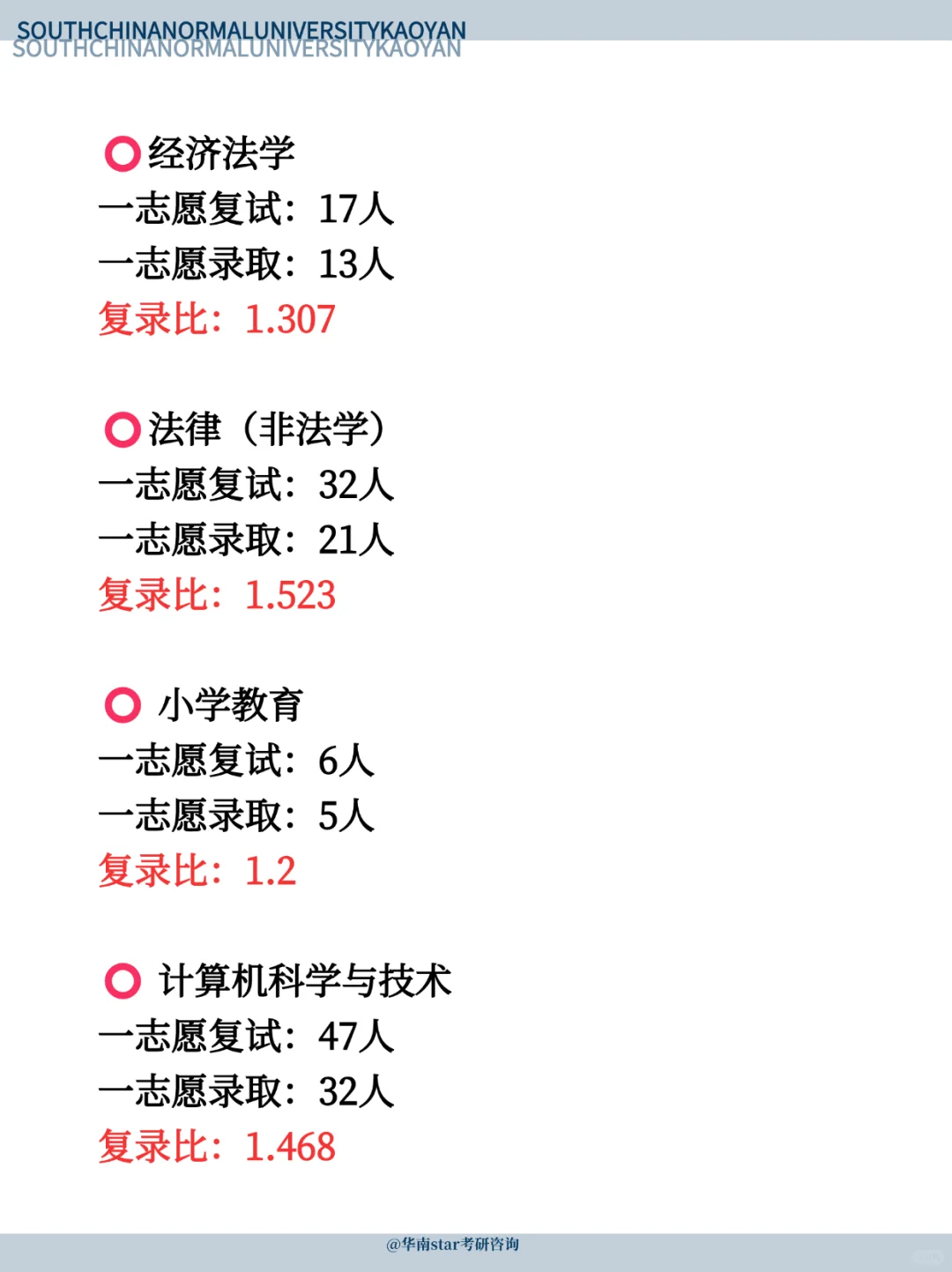 哈喽哈喽25考研华南师范的宝子们,今天学姐给大家整理了部分专业的复录比,大家可以参考一下哈,有未整理到的专业可以问我哈