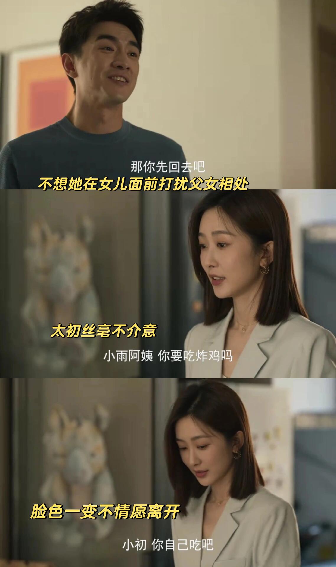 女儿的态度:太初长大了在爸爸的新房里竟然会问爸爸的下属小雨阿姨是不是和他们一起住?这已经很明显地表达女儿都看出来爸爸和小雨的亲密关系已经到了可以同居的地步,也说明这么多年小雨对太初的付出不是没有效果。