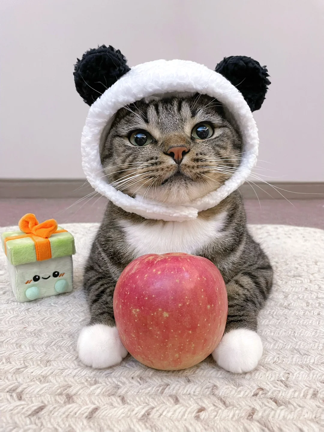 饼饼喜欢垫苹果,熊猫喜欢吃苹果,还都是“猫”,饼子混在🐼熊猫里也不违和嘛!给它整了一套熊猫玩偶,大家看看可爱不?~