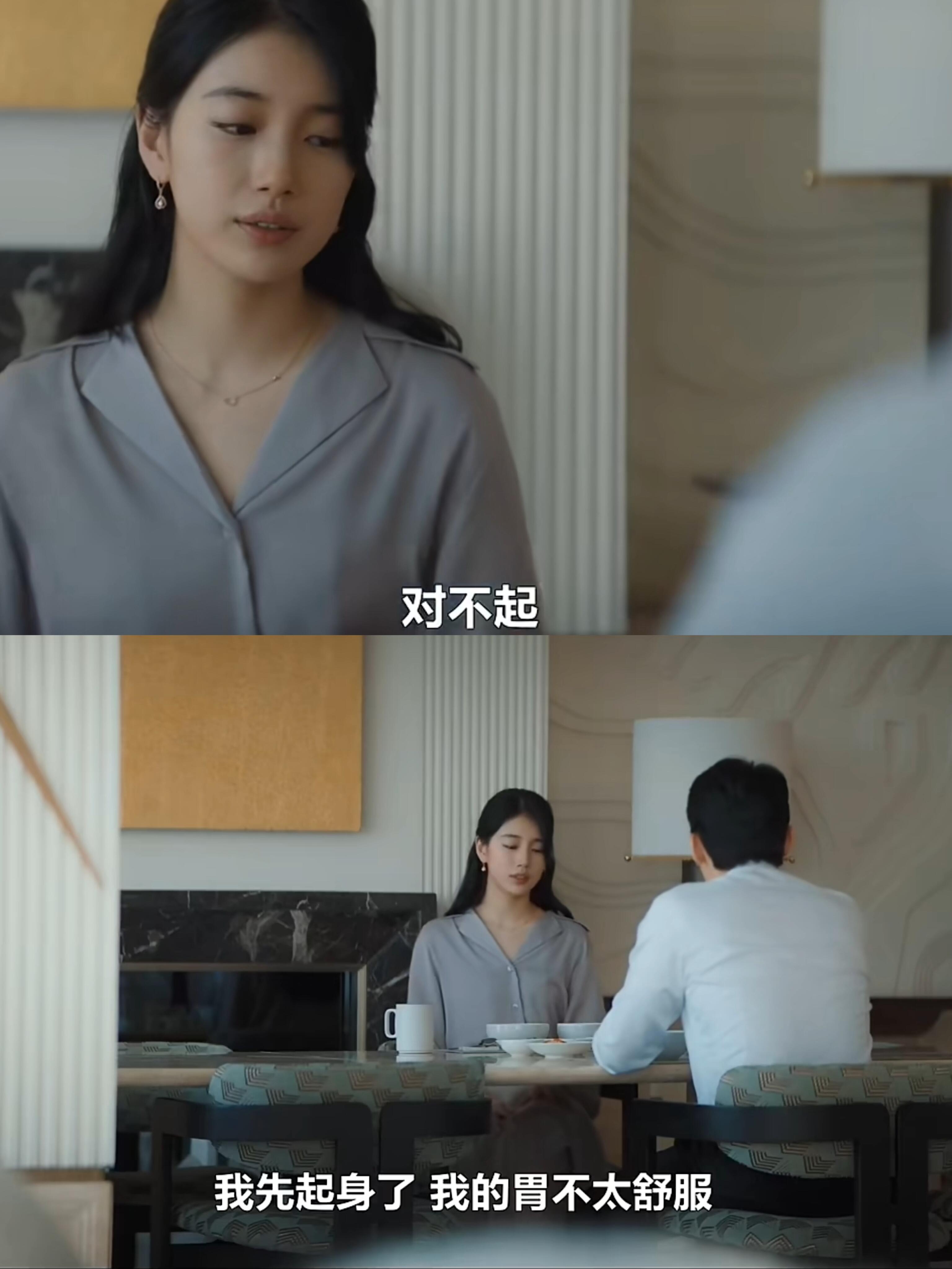 女主也对这些不感兴趣,她说道歉,说自己不舒服起身离开(嗯,这对夫妻相处真的别扭,客气又疏离)
