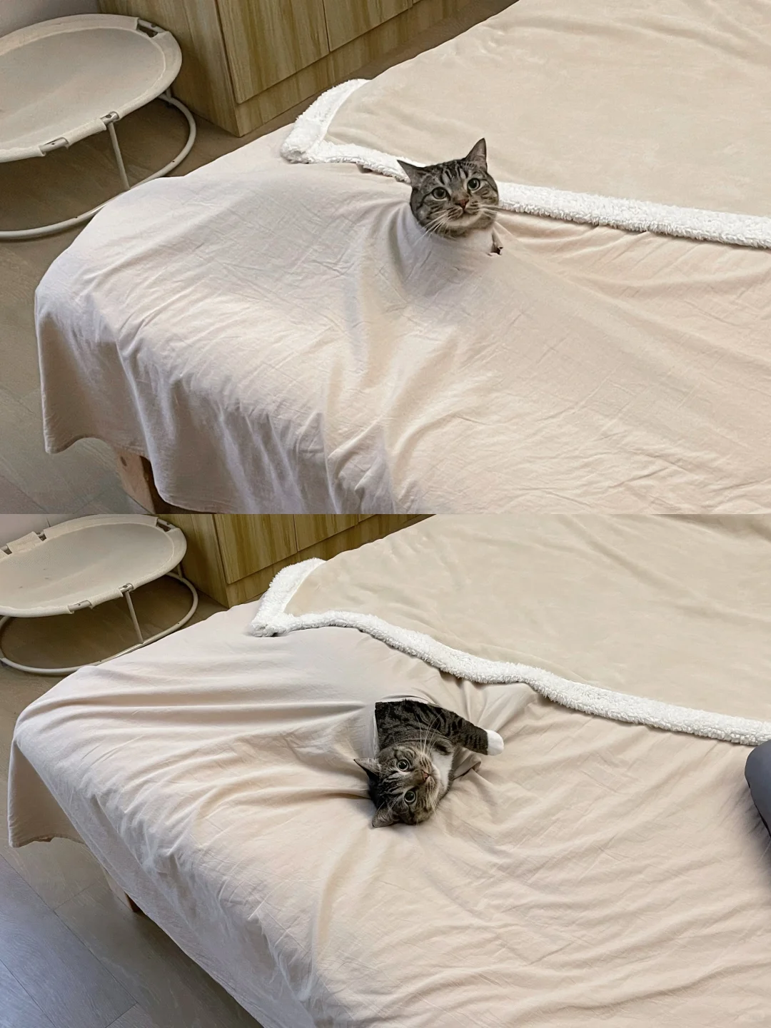 前几天在外面时看了眼监控,差点晕过去[捂脸R]...要是别人来我家看床单烂成这样,都不知道怎么解释![再见R]我在外面当牛做马挣罐罐,猫猫就这样搞破坏报答我!?