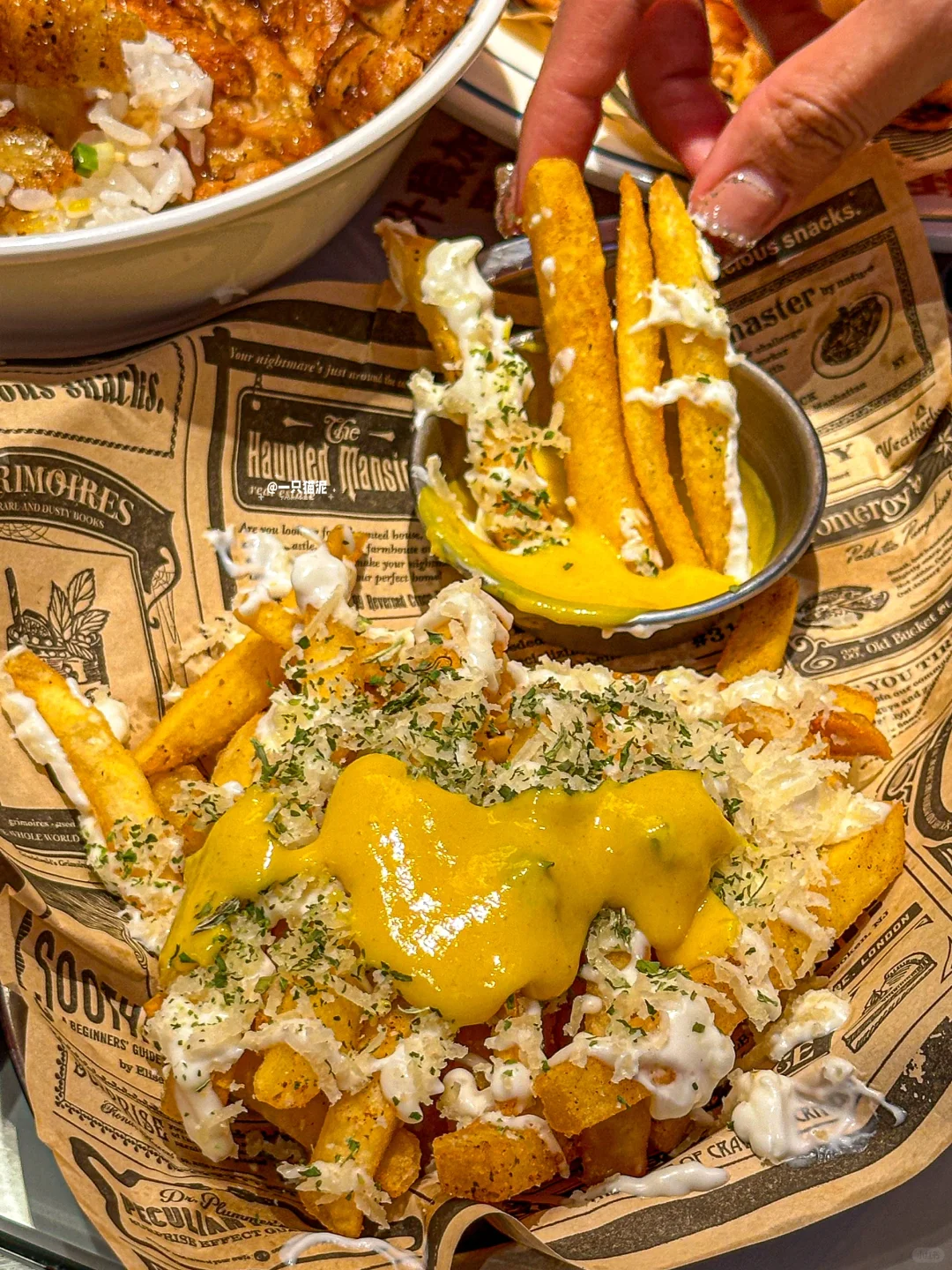 金多多薯条🍟,芝士碎盖满薯条🧀,蘸点蜂蜜芥末酱巨香!