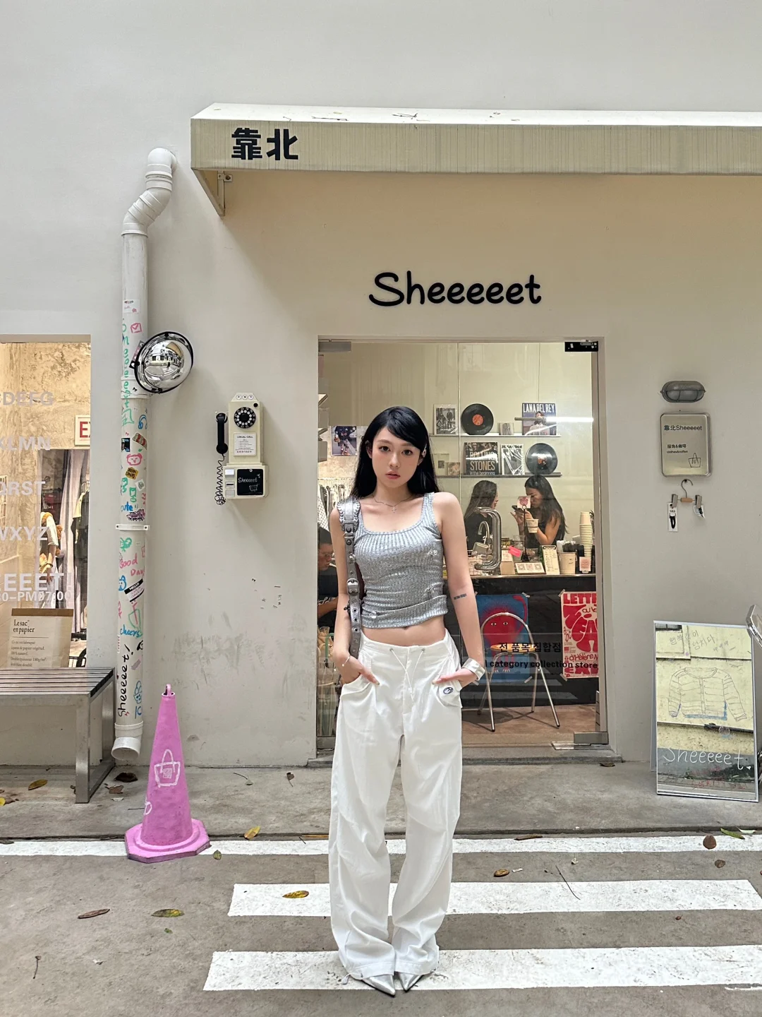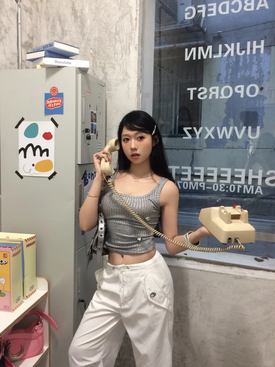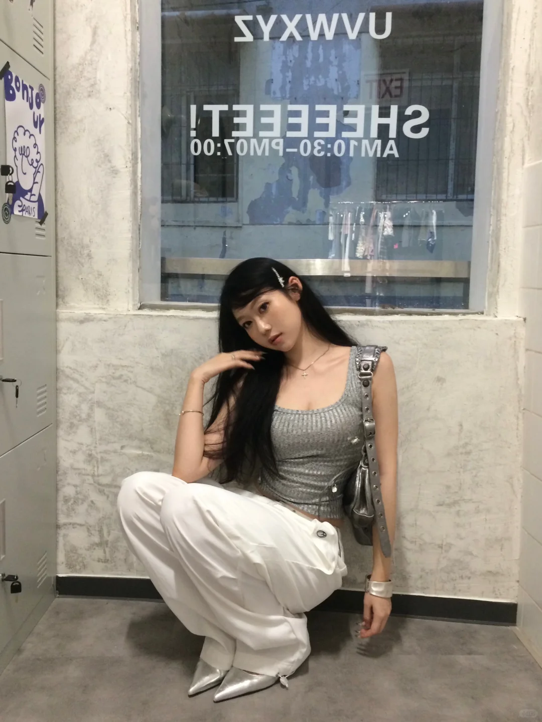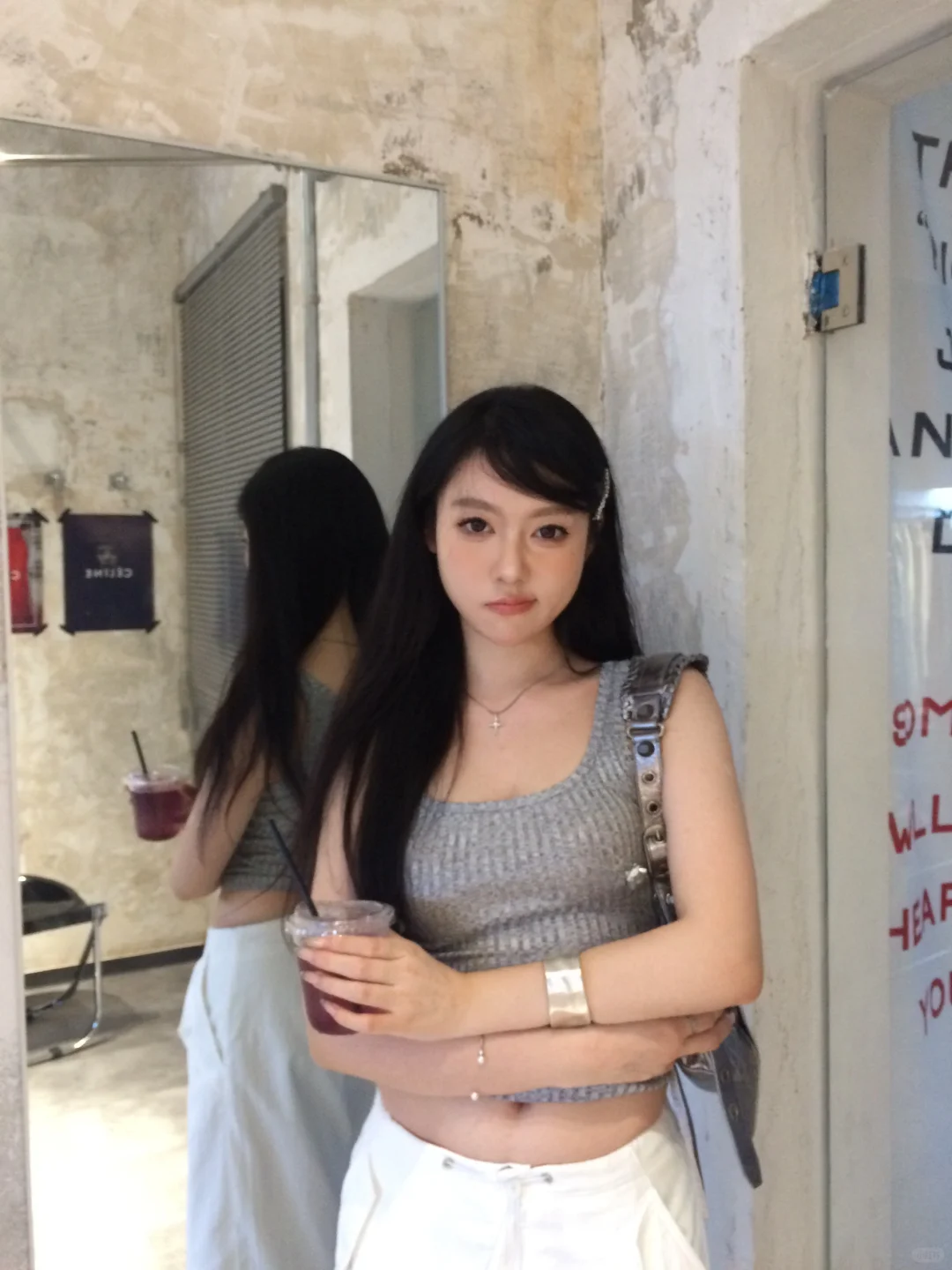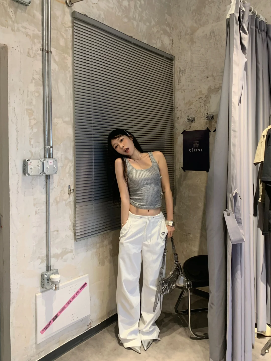 灰调也能玩出清纯感,这街拍真是养眼,美女一袭灰色,甜美不失个性,细腰成焦点,让人心动~点个赞