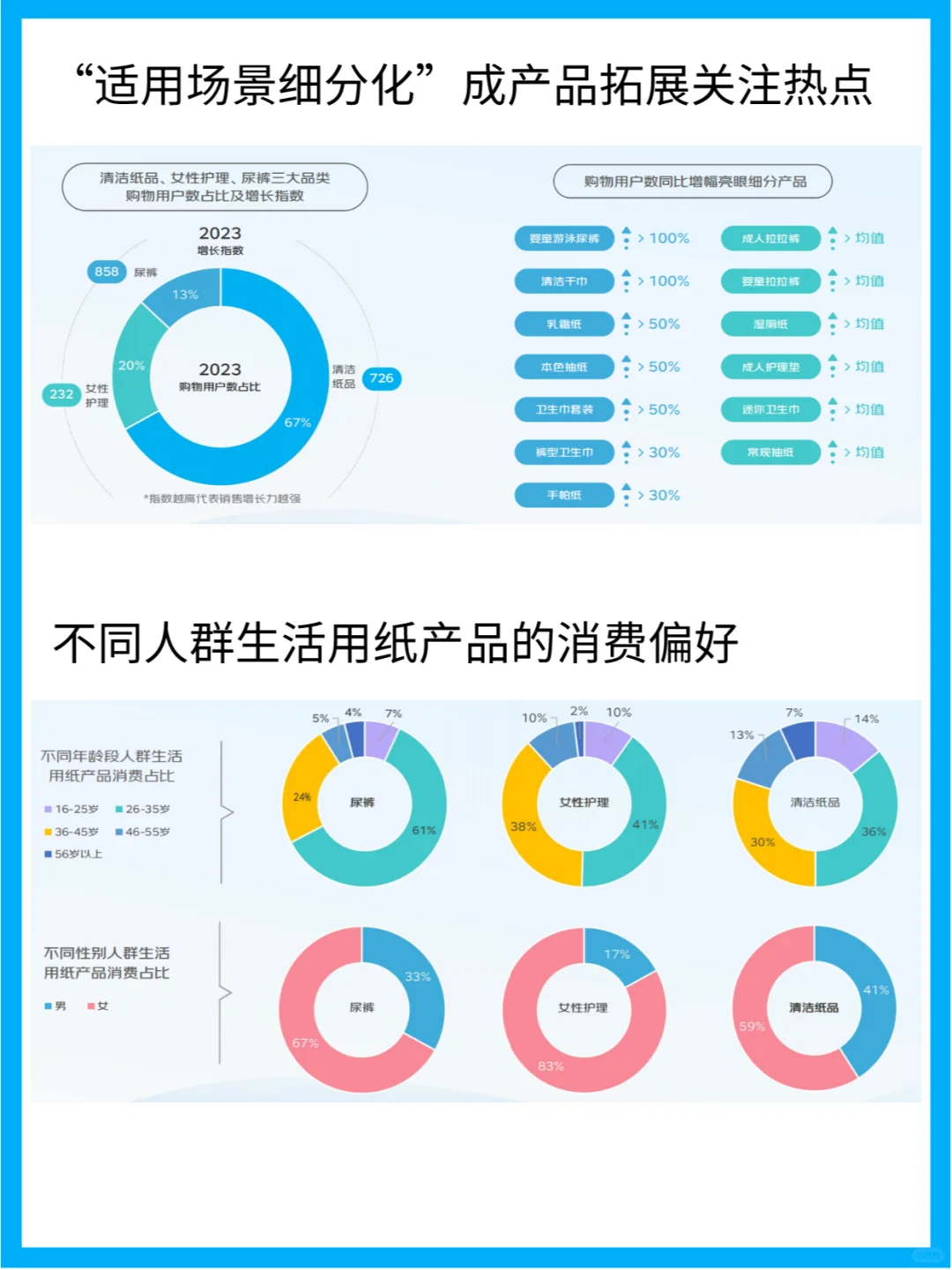 尿裤与成人护理:婴童拉拉裤、成人拉拉裤增速显著,消费者更注重产品的透气性、安全性和舒适度。
