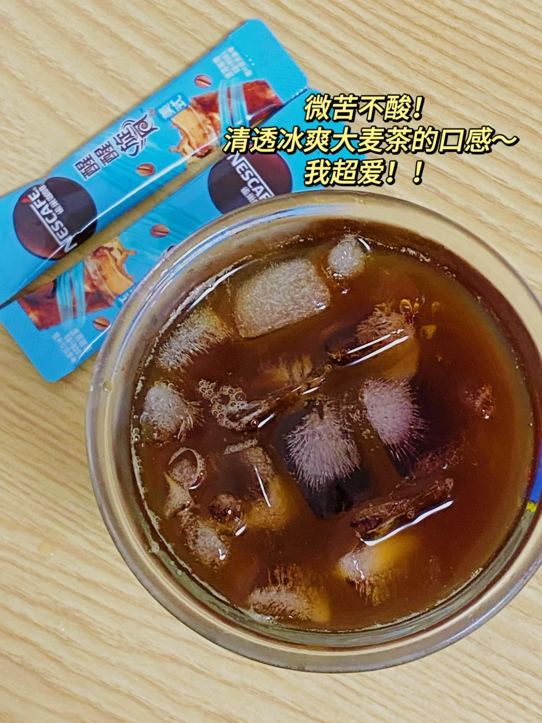 这款口感是微微苦的但不酸,个人感觉喝下去有点像清爽的大麦茶口感,入口比较顺滑!优点是冰水闪溶⚡️,在冰水里面也能很好溶解~完全不会有沉淀,轻轻摇一摇就冲开了~不需要搅拌棒👌