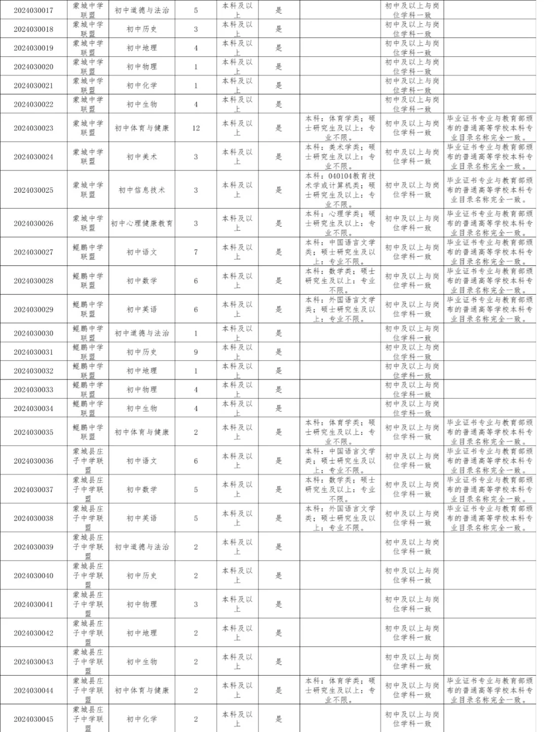 蒙城需教师200人