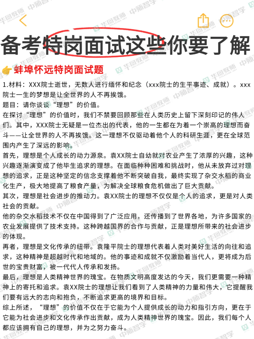 蚌埠/宿州/阜阳/安庆特岗面试题