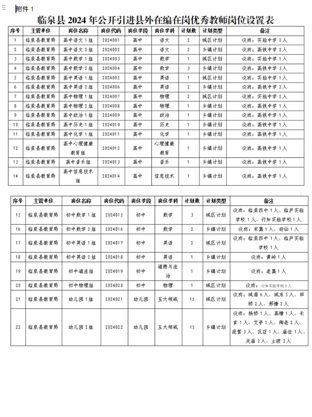阜阳临泉县引进县外在编在岗优秀教师60名