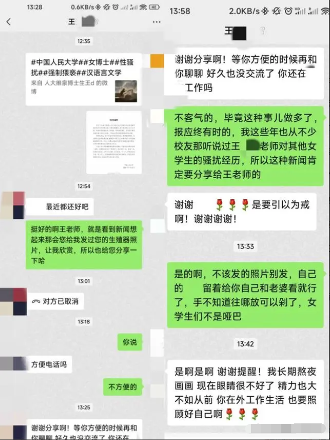 这些大学教授到底是怎么了?那个学生看到中国人民大学迅速处理了王贵元的事,所以才把这件性骚扰的事情曝光出来的。