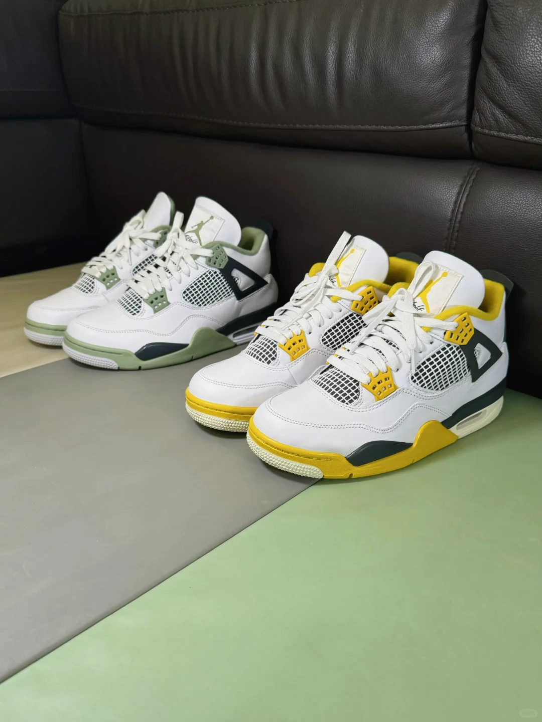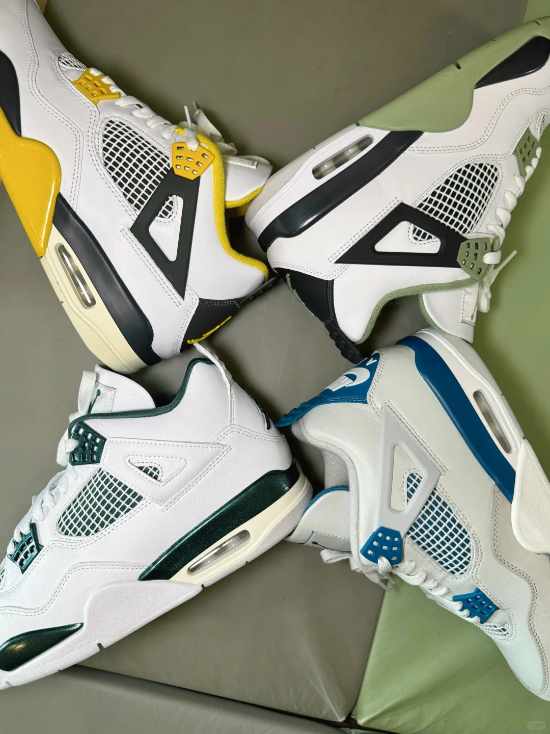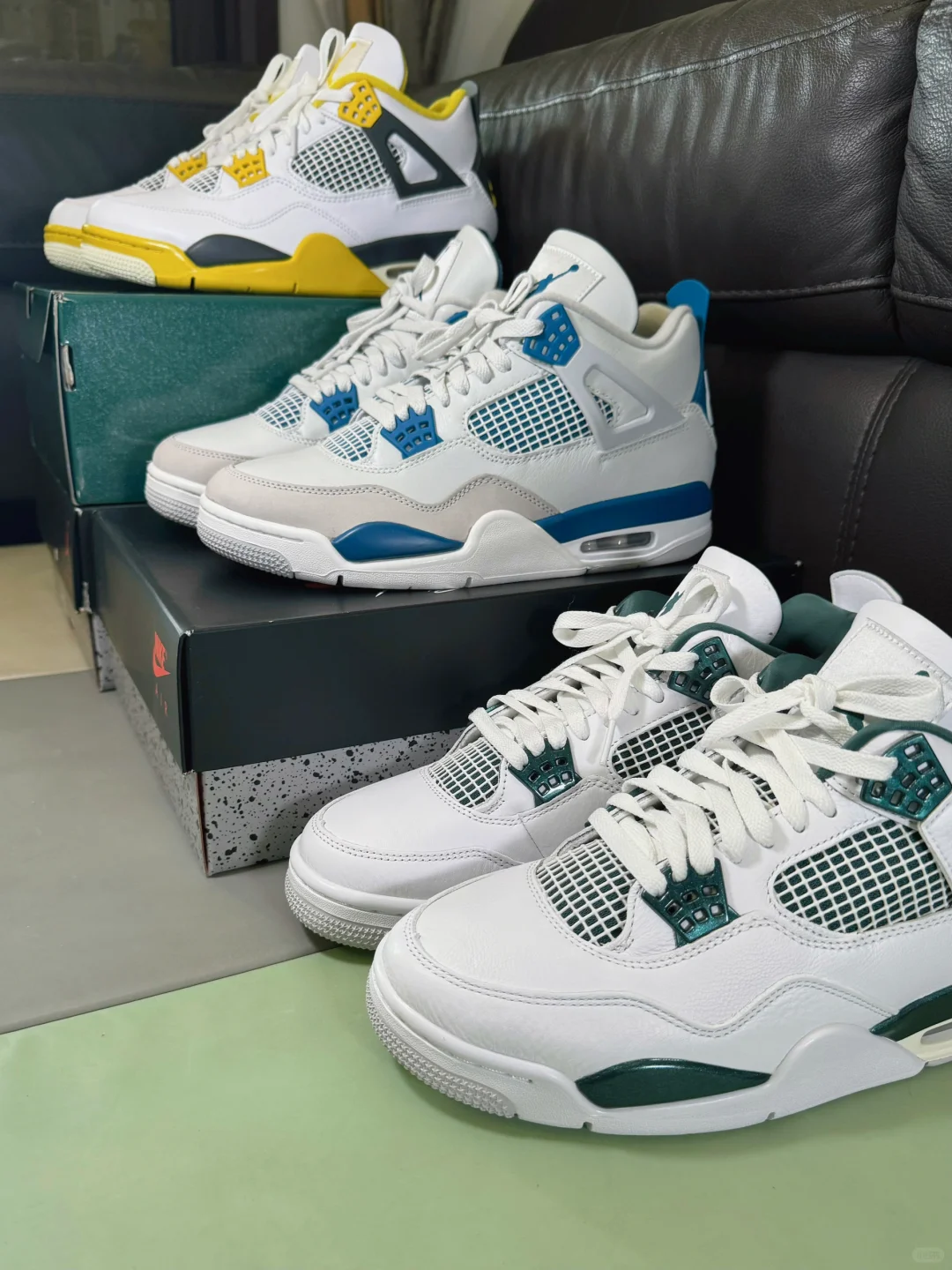-有木有喜欢乔四的小伙伴们集合啦 -很难拒绝浅色系的白色乔四绝绝子 -分享四款个人觉得的好配色自留款 . —————— . 1. Air Jordan 4 / oil green 2. Air Jordan 4 / vivid sulfur 3. Air Jordan 4 / military blue 4. Air Jordan 4 / oxidized green . —————— . ✏️本人球鞋尺码265mm(正常 EU42) . 💭以上均为我个人观点,不喜勿喷,欢迎讨论。