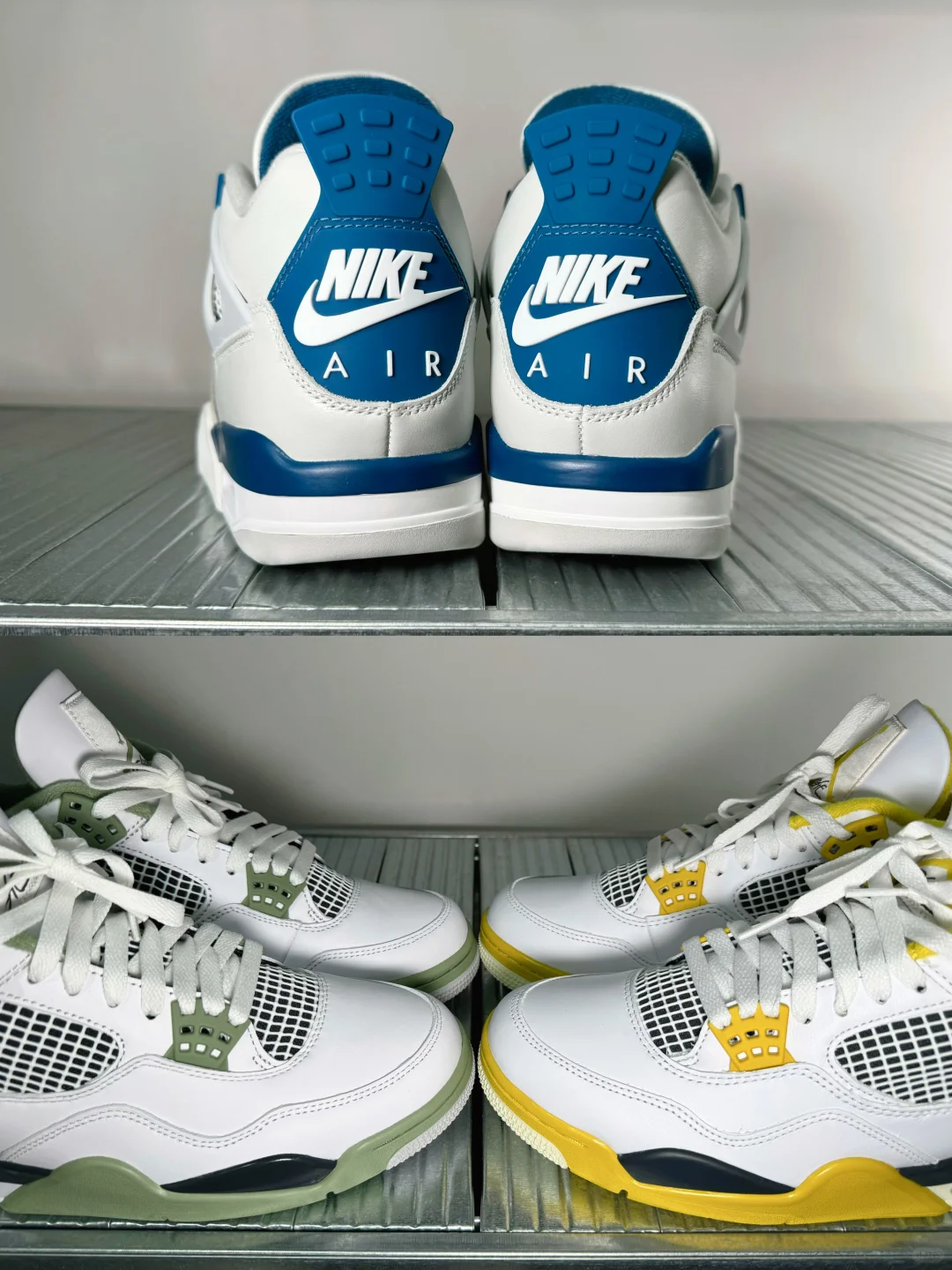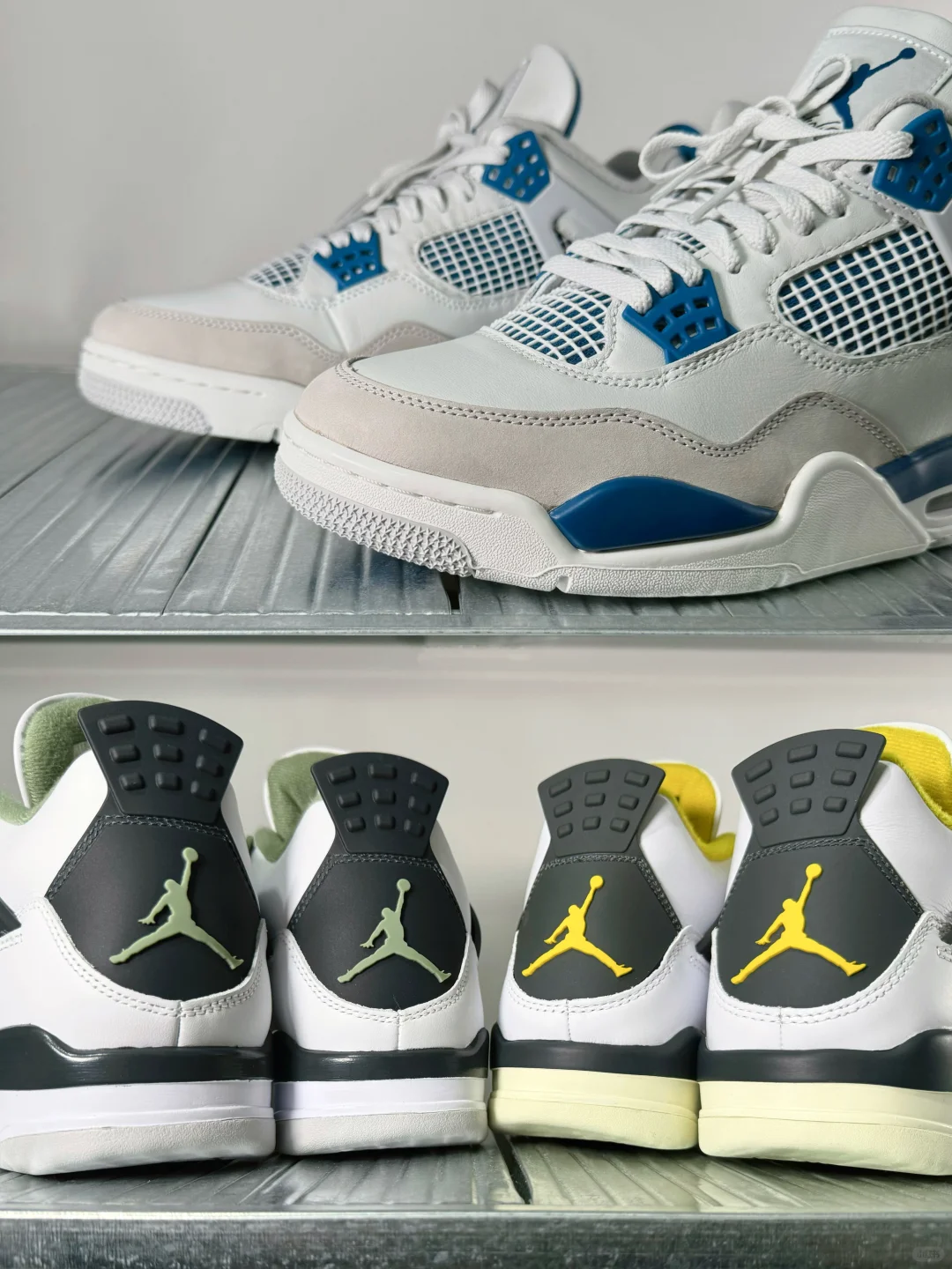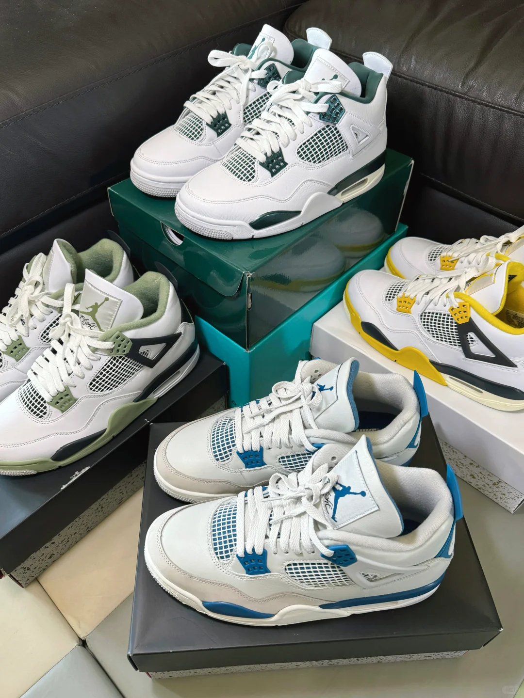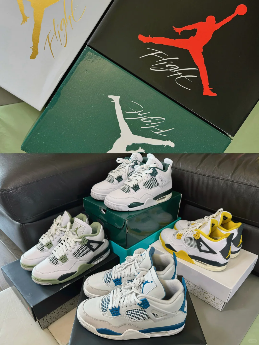 -有木有喜欢乔四的小伙伴们集合啦 -很难拒绝浅色系的白色乔四绝绝子 -分享四款个人觉得的好配色自留款 . —————— . 1. Air Jordan 4 / oil green 2. Air Jordan 4 / vivid sulfur 3. Air Jordan 4 / military blue 4. Air Jordan 4 / oxidized green . —————— . ✏️本人球鞋尺码265mm(正常 EU42) . 💭以上均为我个人观点,不喜勿喷,欢迎讨论。