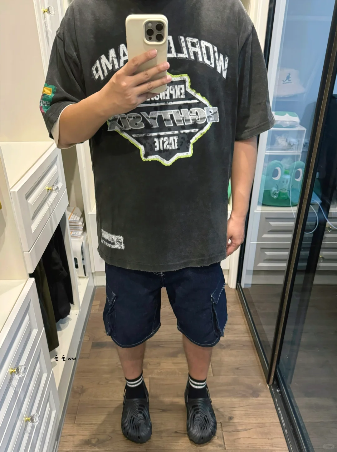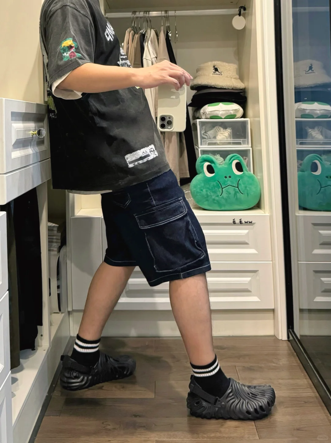 -一直很喜欢这双指纹鞋的设计,脚感适中不算难穿;但鞋型略扁与勃肯类似,某些角度会奇怪 . -丹宁工装短裤,之前试过很多配色,原色蓝牛轻松搭配,大口袋的设计容易适配球鞋或洞鞋 . —————— . ✏️本人178cm75kg 球鞋尺码265mm(正常EU42) . 💭以上均为我个人观点,不喜勿喷,欢迎讨论。