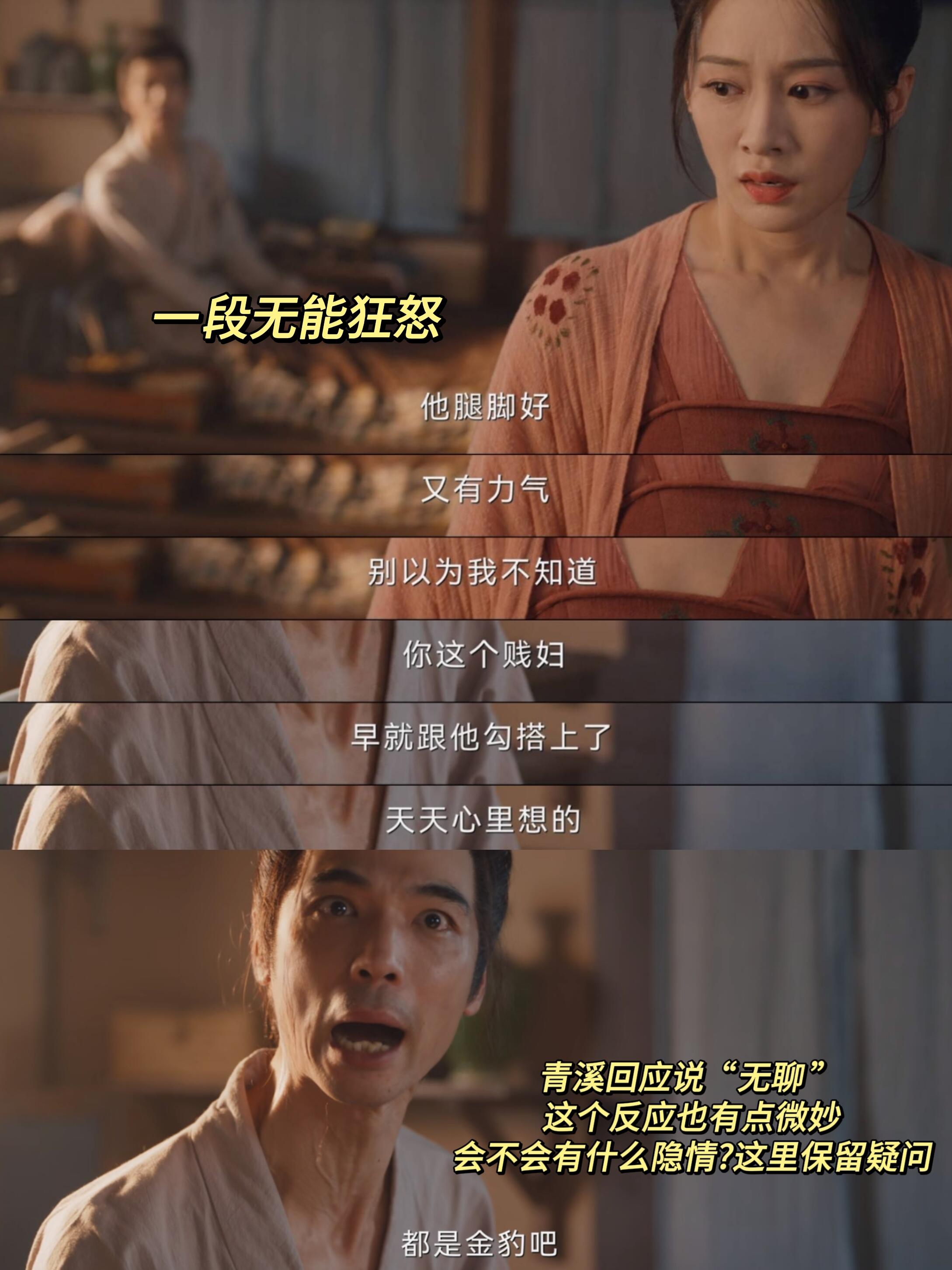 青溪自己的故事还不明朗,但这个丈夫是真的好典,无能狂怒和以己度人的阴暗心思,都太真实了。