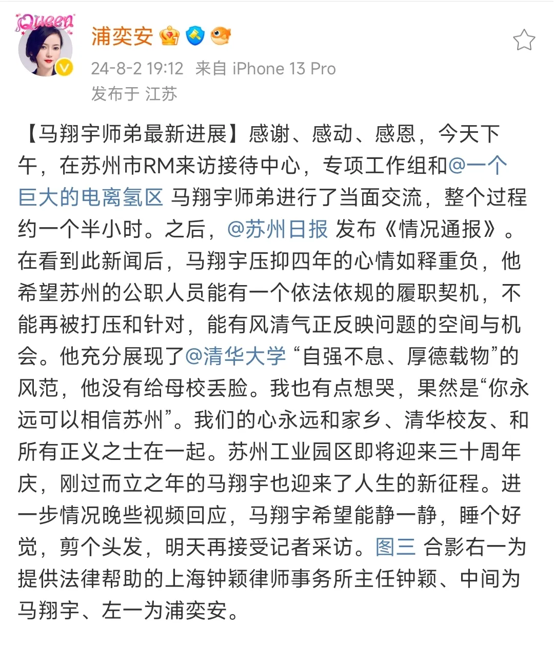 浦奕安,马同学的师姐和贵人,今天亲自陪着马同学回到了苏州,她分享了5个真实情况: 1. 今天下午他们总共聊了1.5个小时,虽然时间不长,但是聊的内容挺详细的。
