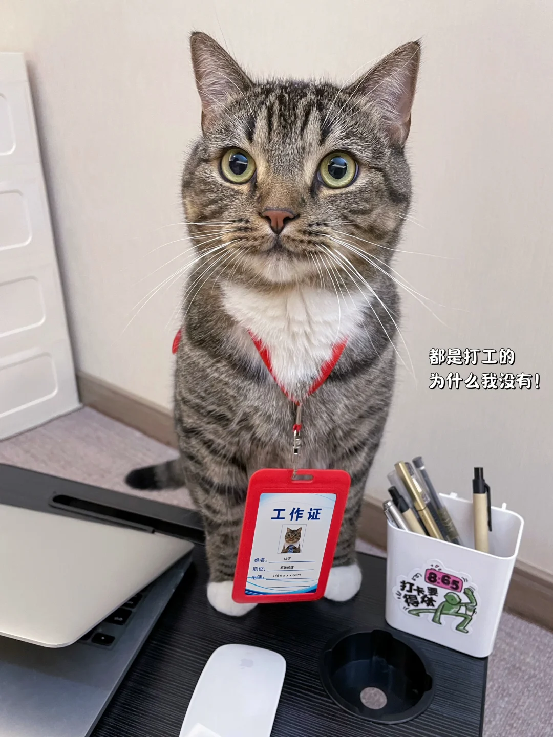 哈哈,职场不仅有人类同事,还有“猫间谍”!这小家伙是不是想学点销售技巧啊?防不胜防,猫咪也八卦