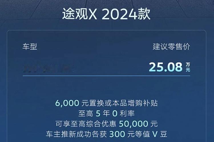 近日,上汽大众官方透露,2024款途观X正式上市,新车只有一款车型,售价为25.08万元。动力上,新车搭载的是2.0T发动机,最大功率137千瓦,最大扭矩320牛·米,与之匹配的是7速湿式双离合变速箱。【来自懂车帝车友圈】
