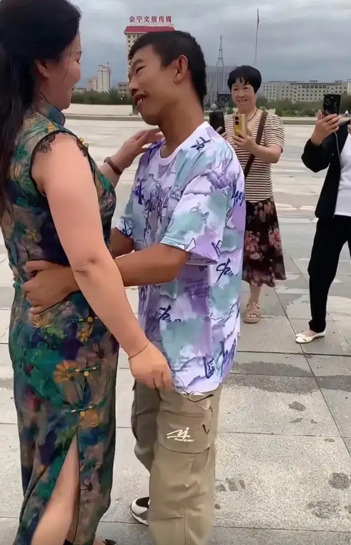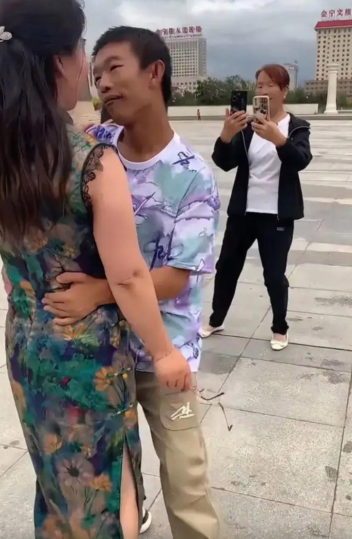 明显智力有缺陷,被抱的那个大姐肢体语言明显是防御姿势,就也是说摆拍。为求流量不择手段,该死。