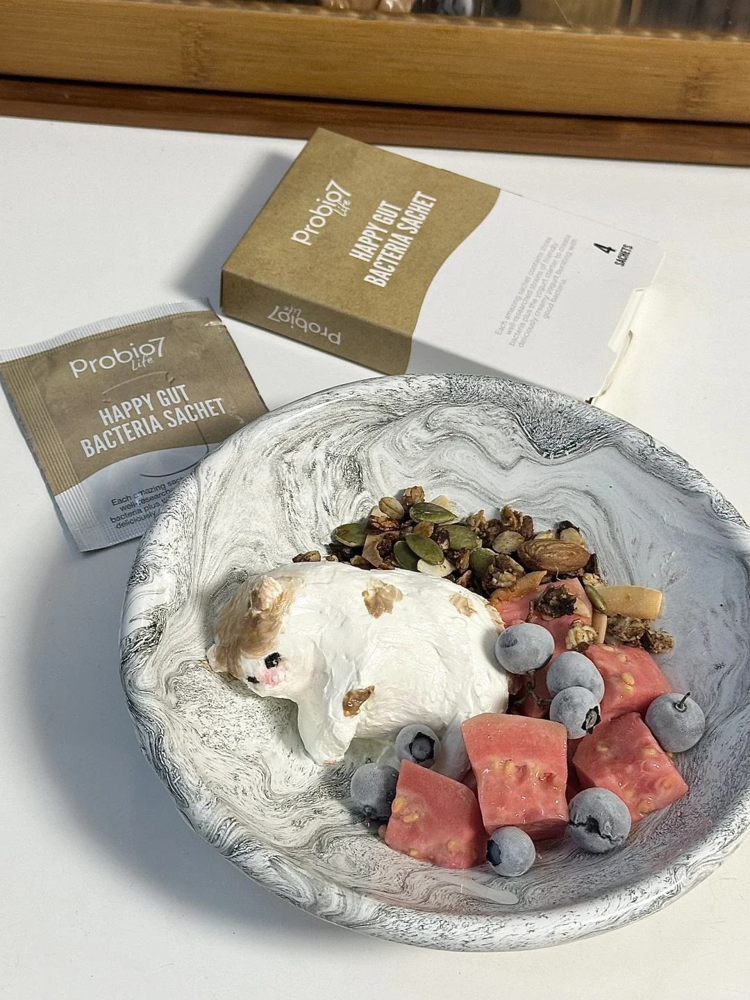 酸奶:1L牛奶、1小包酸酸菌粉(我用的是Probio7的,做出来的酸奶口感很好,成品质地是可以拉丝的状态,过滤掉乳清就是石膏一样的浓稠度!简直太适合做干噎希腊酸奶啦!制作也很方便,直接加入牛奶发酵就行啦~)