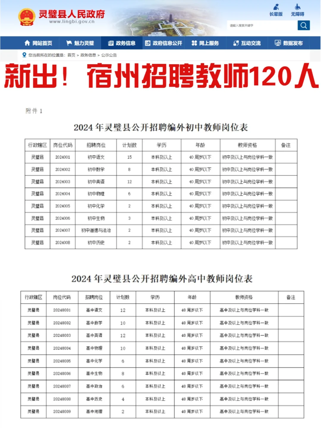 宿州发布公告!需高中教师70人;初中教师50人