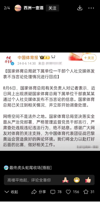 有人质疑,袁某某在如此高的职位上长期发表不当言论,为什么体育总局之前没有采取行动?如果不是网友们的举报,他是否会连夜删除所有微博并逃往国外?