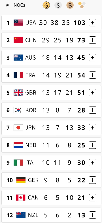 昨夜今晨,在奥运金牌榜上短暂冲到第一的中国,又被美国超越,不得不感叹,老美后程实力强。不过,中国刚刚又添一枚金牌,总共29枚了。