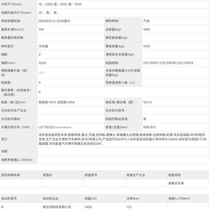 【新款领克06汽油版申报图曝光】 新款领克06汽油版车型采用了最新的家族式设计,h形前大灯组显得格外犀利,下方是贯穿式的前中网,整体风格更加时尚动感。 申报信息显示,新车可选双色车身、360度全景影像、两种不同款式的前保险杠饰板等多种配置。 动力上,新车搭载了一台1.5T发动机,最大功率为133kW(181马力)。【来自懂车帝车友圈】