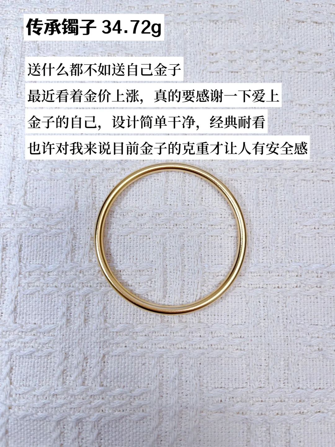 以前也很喜欢奢侈品和衣服,但当真正到手后也只是一时的开心激动,过后也是归于平淡,只有一时的开心,但黄金不一样,放在那里看着也是开心的 但今年的金价不断破新高了😭😭感慨自己买了一些,幸运的是在📈之前定了自己喜欢的手串,有点小窃喜 在能力范围内可以给自己买金子哦,存金豆豆,特别是在想消费的时候,不如就存金吧! 谢谢你的time,see you next~ [樱花R][樱花R][樱花R] 我是精简生活,一心搞钱,追求经济独立 持续分享高质量的自我提升|存钱省钱|搞钱技巧 让我们一起成为小富婆,早日退休🎉 年度幸福感好物 黄金首饰 金饰 黄金 送自己 金项链好物分享精简生活 长期消费主义 主义