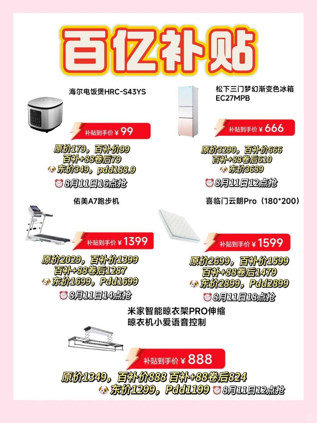而且最近淘宝百亿补贴优惠力度真的太大了🥰上淘宝搜《淘宝百亿补贴》,全场超多美食低价拿到手软,简直是零食宝宝的福利场。不仅如此,还有许多大牌家电价格直接对半砍,像超好用的松下冰箱仅需3⃣️折即可入手,现在参与预约,8月11日整点秒杀,每一件抢到都是赚到,错过这波我都替你后悔!!!