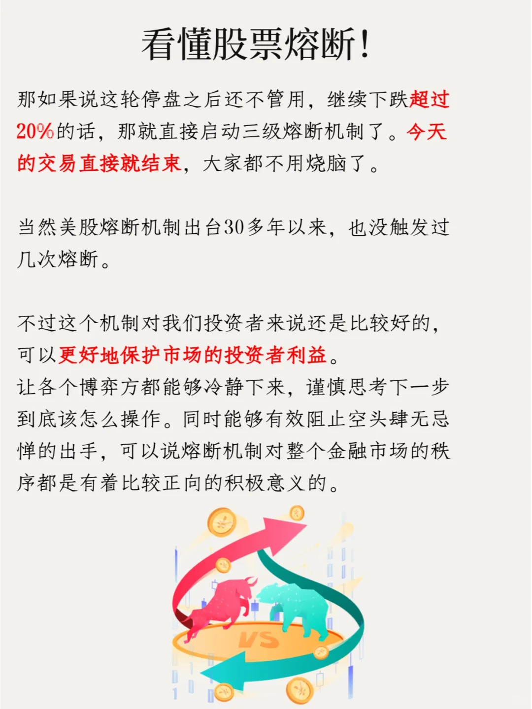 那如果说这轮停盘之后还不管用,继续下跌超过20%的话,那就直接启动三级熔断机制了。今天的交易直接就结束了,大家都不用烧脑了。
