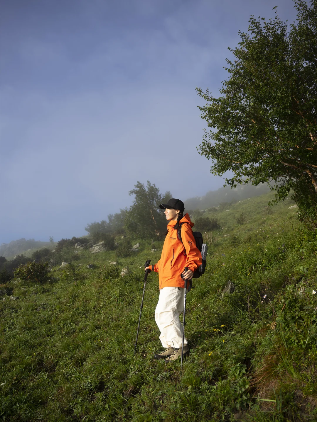 这件版型和配色很喜欢,亮亮的阳橙色很出片,也是户外安全色,雨雾中都很显眼,妥妥的户外显眼包!