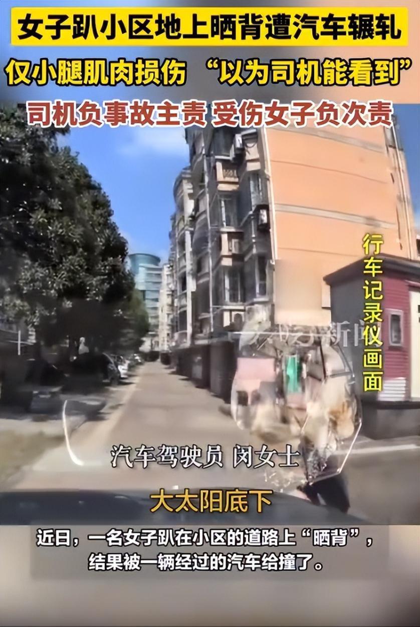 女子在小区内趴地晒背,结果被车碾压,真是让人大跌眼镜,有几个意想不到的点:
