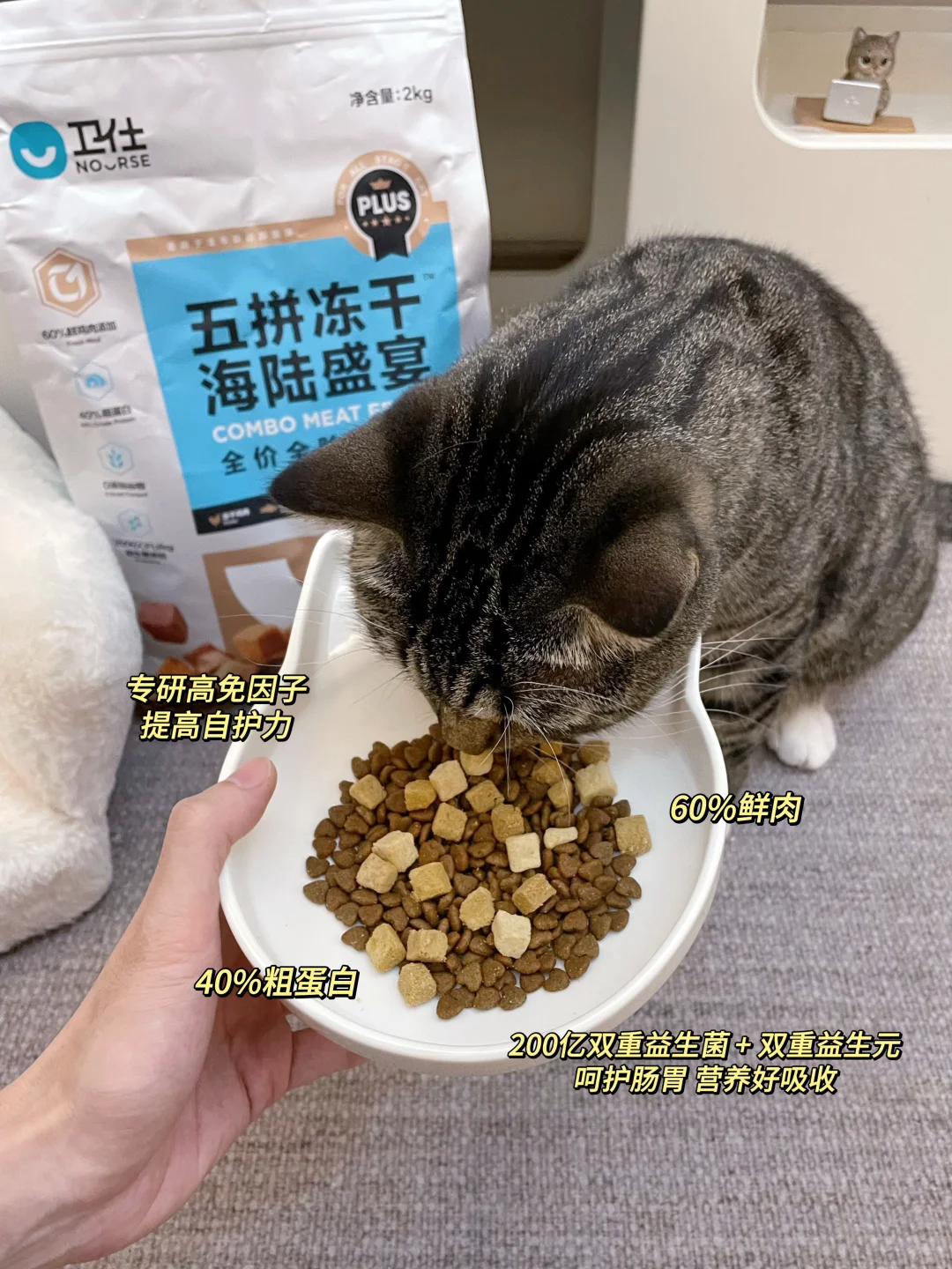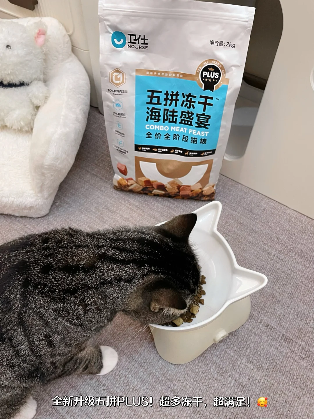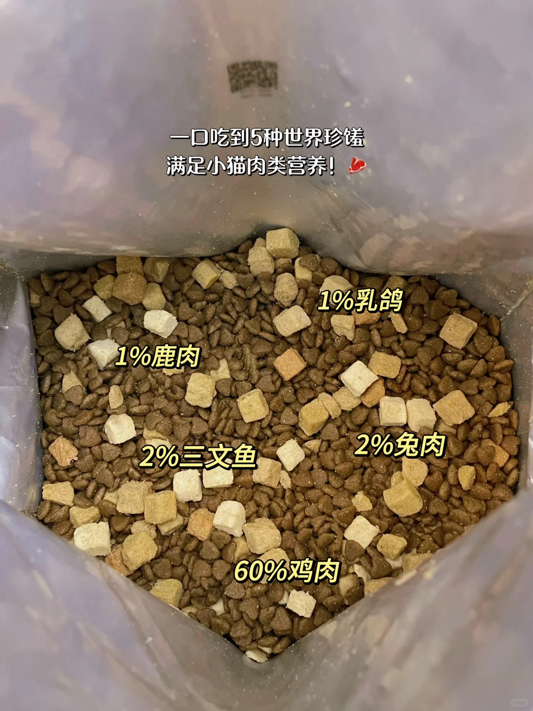 其实也不怪这个饼儿咪长这么敦实[大笑R],吃的猫粮里满满都是“大鱼大肉”!卫仕全新升级的五拼PLUS猫粮,真不愧是海陆盛宴,差不多四分之一都是冻干,猫咪一口就吃到鹿肉、乳鸽、兔肉、鸡、鲑5种美味珍馐,加上60%鲜肉含量,哪个猫儿不爱吃呢~