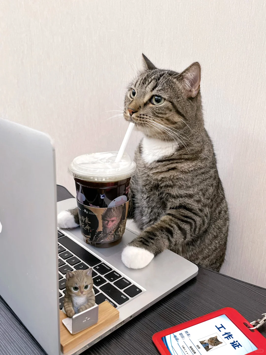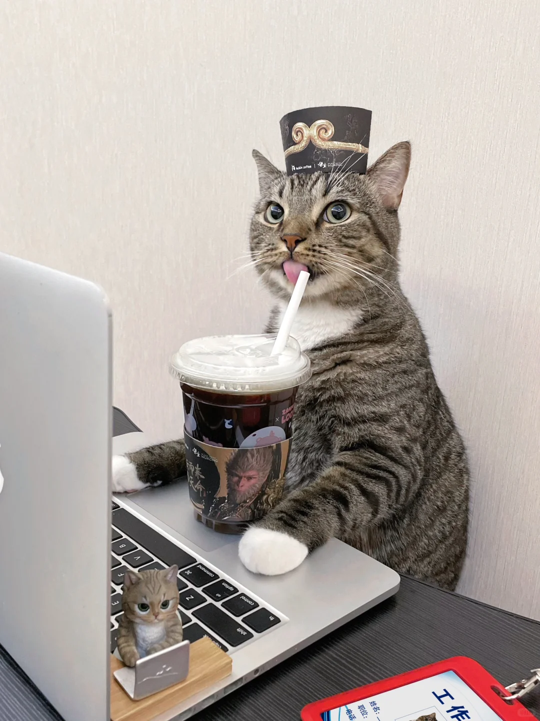 猫喝饮料这事儿,不是偷喝,是职场“猫”际交往新策略啊,哈哈,下次给它发个工牌?