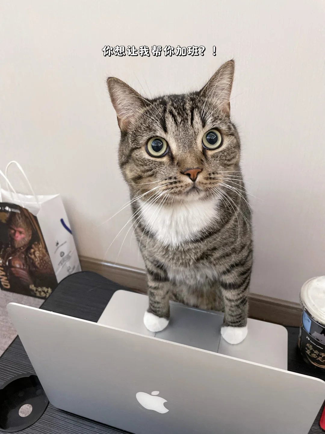 大无语,放桌上的饮料又被猫同事偷喝了!