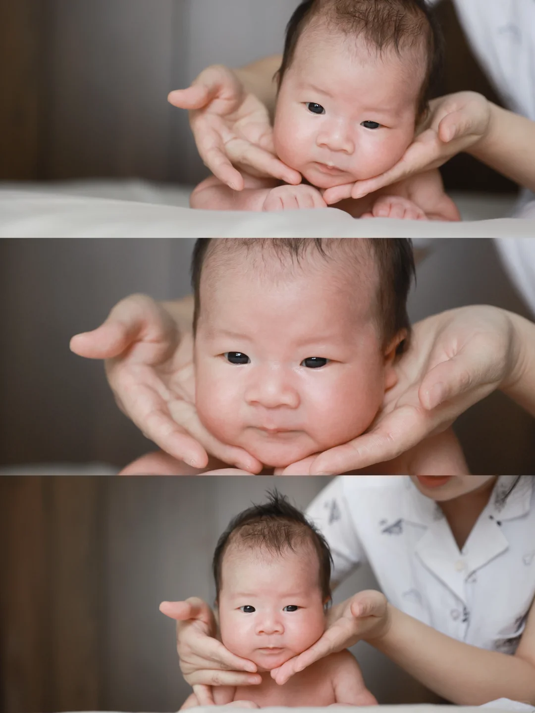 这一个月里,你醒着的时候大多数都在嗷嗷哭,洗澡哭、换尿不湿哭、没人和你说话哭、吃奶哭、放床上哭、睡着了突然哭,一点小胳膊小腿力气超大,哭起来拳打脚踢踢得你妈好痛🤕,哭累了睡5分钟,醒来接着奏乐接着哭。